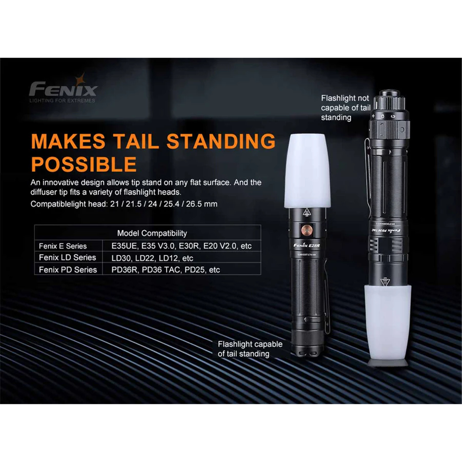 The Fenix AOD-S V2.0 is a mini diffuser tip with an innovative design allows tip stand on any flat surface. Transform your Fenix light into a reading, signal or emergency light. Attachment is quick and secure with high-quality PC materials; durable, impact resistant, high temperature resistant designed for field used.
