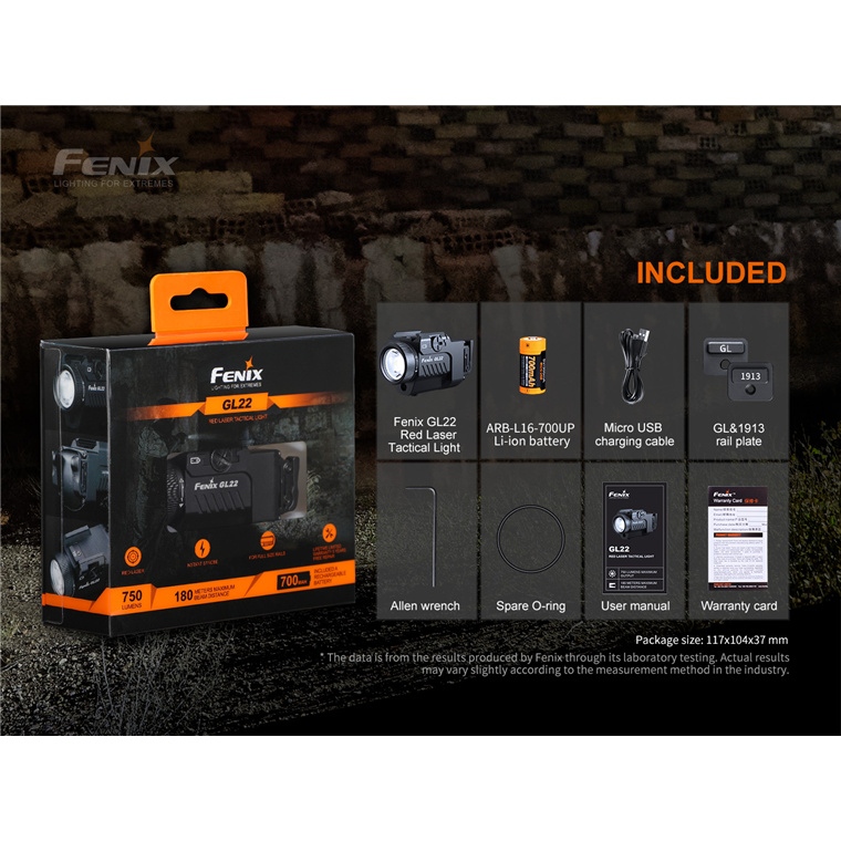 Fenix Gun Light & Tactical GL22 Multi-Purpose Tactical Flashlight, Max 750 Lumens, Powered by 1 x 16340 700mAh Li-ion Battery, Build-in Micro USB Charging Port, Precise Red Laser Aiming. 5 Years Free Repair Warranty (Battery for 1 year)!