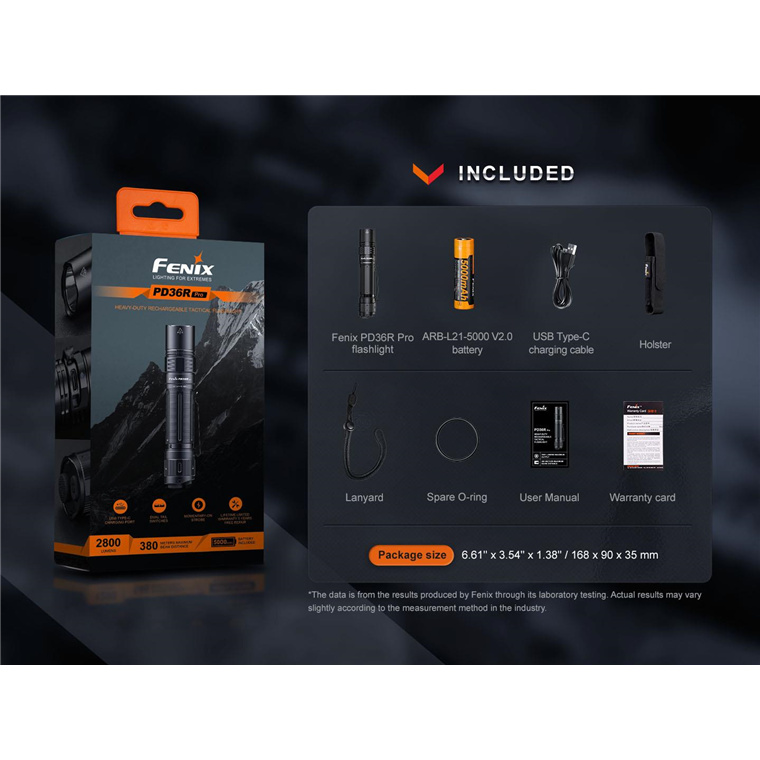Fenix Tactical & Ourdoor Flashlights PD36R Pro Heavy-Duty Rechargeable LED Torch Max 2,800 Lumens, Head: 1.04" (26.5mm), 380m Max Distance, Powered by 1 x 21700 5,000mAH Li-ion Rechargeable Battery Included, USB-C Charging Cable
