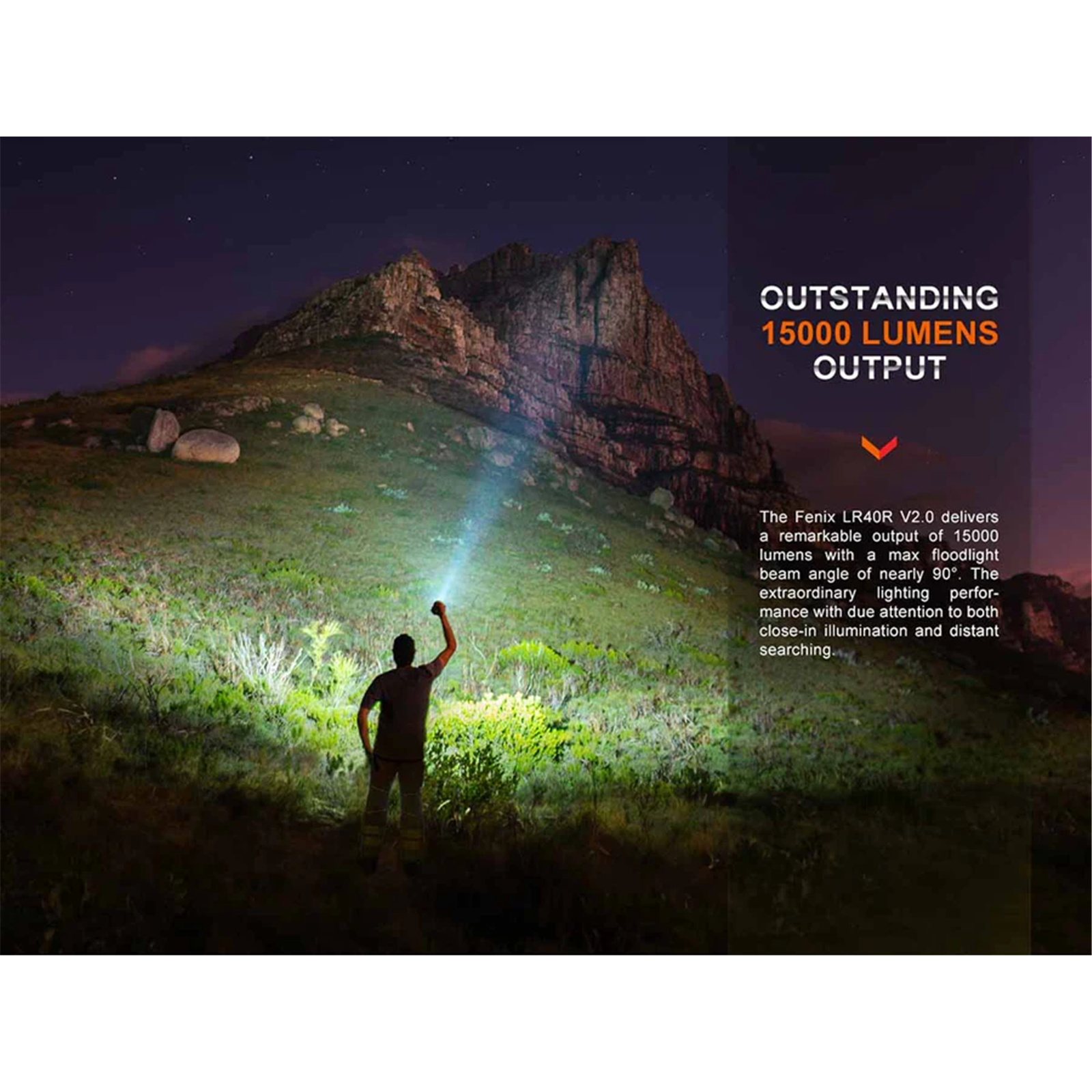 Fenix LR40R is a high-performance rechargeable ultra-compact searching flashlight that combines spot-and floodlight. You can operate the light with one hand with a toggle and electronic switch combination. Catering for numerous outdoor and extreme environments, this light is an indispensable helper in cave exploring, searching and rescuing, as well as acting as a backup light for drivers.