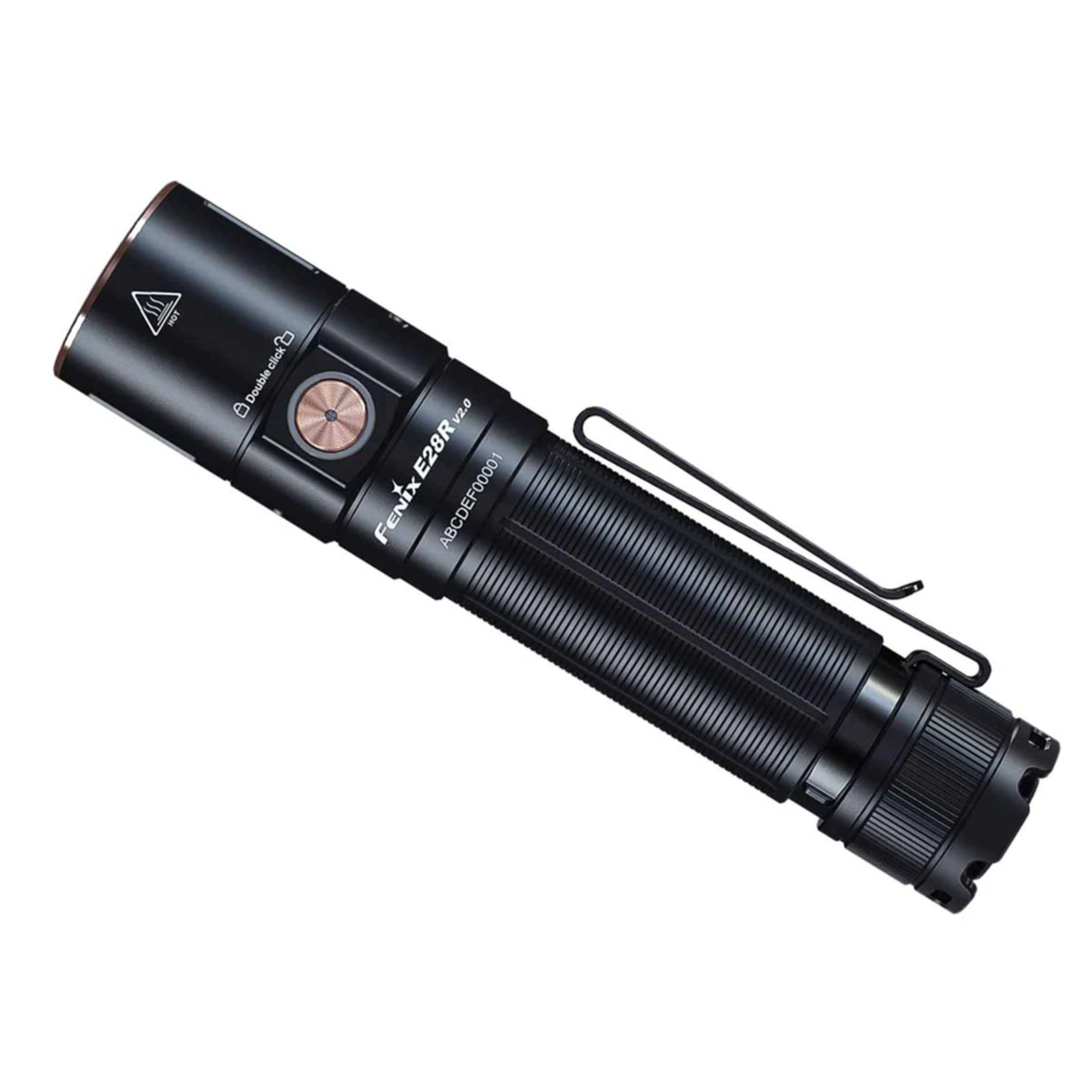 Fenix Everyday Carry Torch E28R V2.0 Rechargeable Flashlight Max 1,700 Lumens - Black, Head: 1.04" (26.5mm), Build-In USB-C Charging Port, Aluminum Body Powered by 1 x 18650 3400mAH Li-ion Battery & USB Charging Cable Included