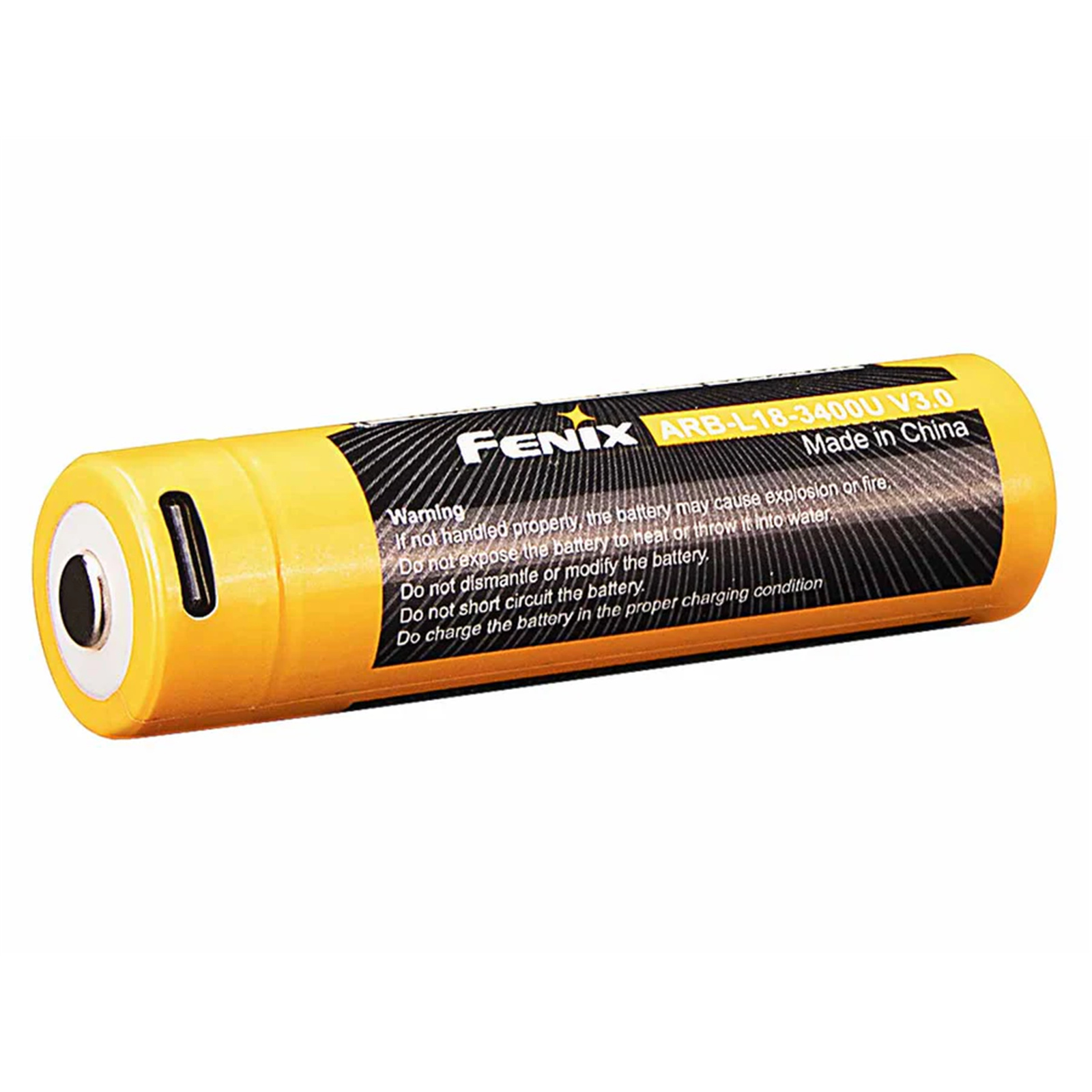 Fenix 18650 Li-ion Battery ARB-L18-3400U V3.0 Rechargeable Battery Button-Top, Built-in USB Type-C Charging Port, 3400mAh, 3.6V, with Protective Circuit in the Anode