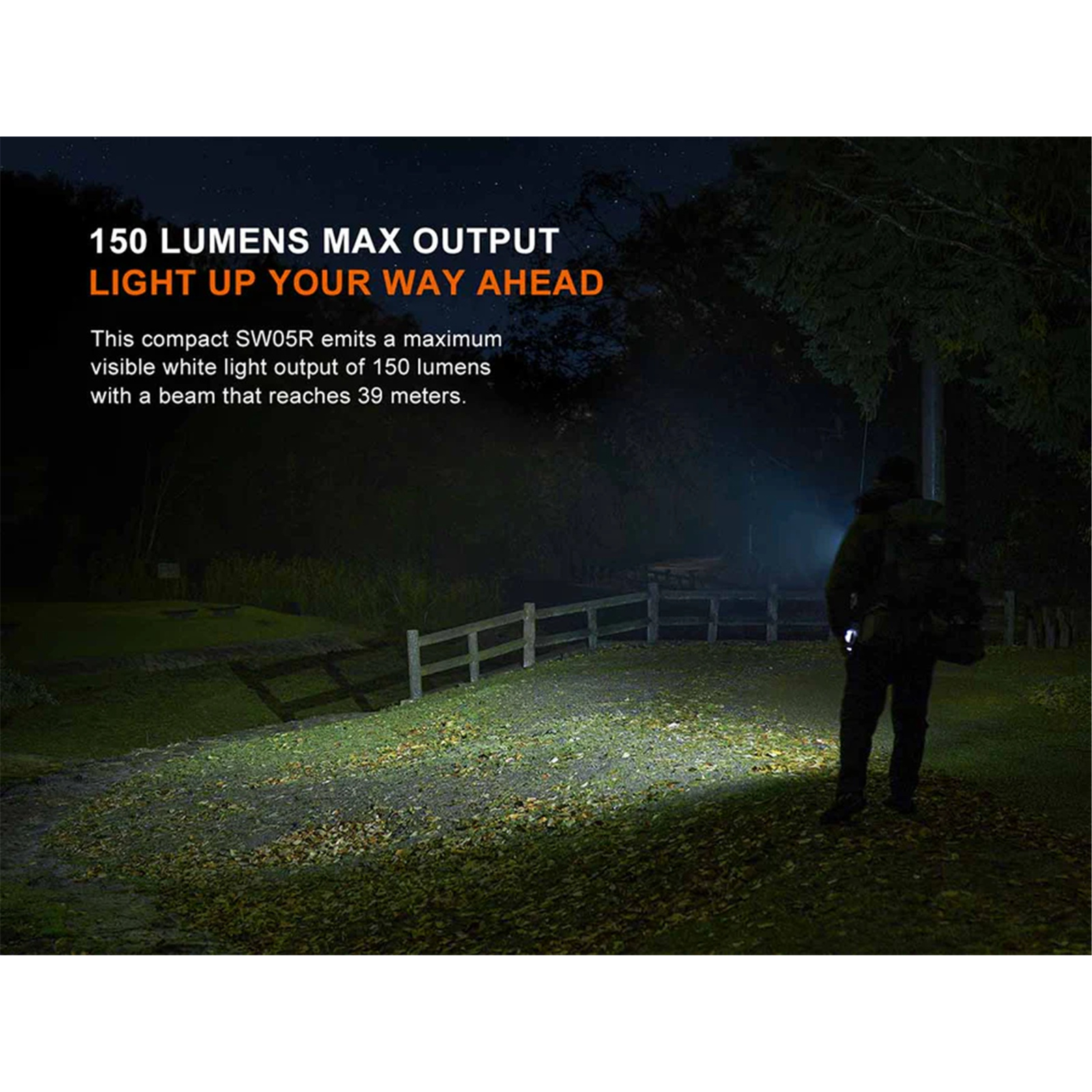 Fenix Everyday Carry Torch SW05R-RED Black Max 150 Lumens + Red Light, Max 39 Meter Beam Distance, Body Clip, Adjustable Head, Magnetic Tail, Built-in 700mAh Rechargeable Battery, 2-Years Free Repair Warranty (Battery included)!