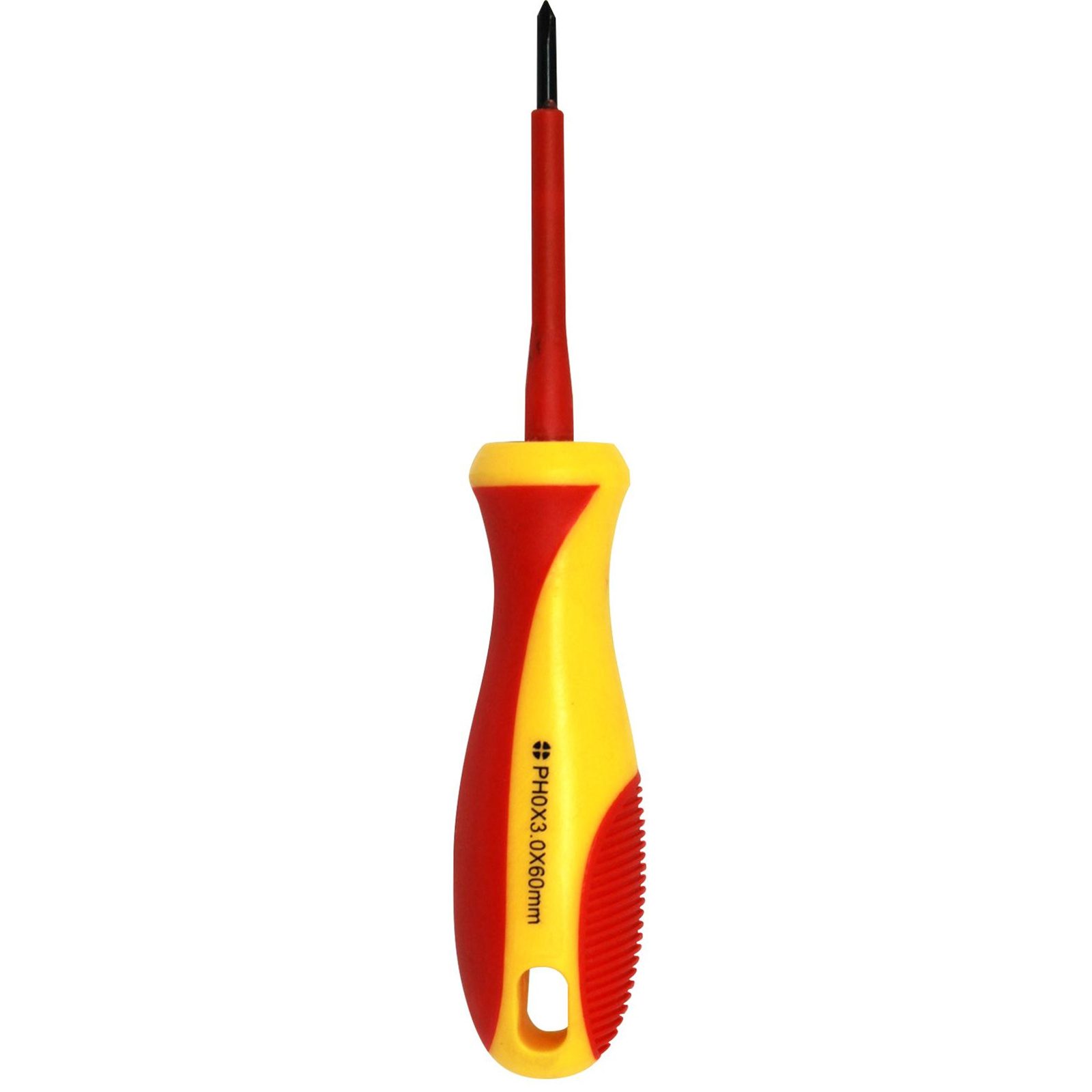 Goldtool Screwdriver 60mm Electrical Insulated VDE Tested to 1000 Volts AC - PH0 60mm - Yellow/Red Colour Handle