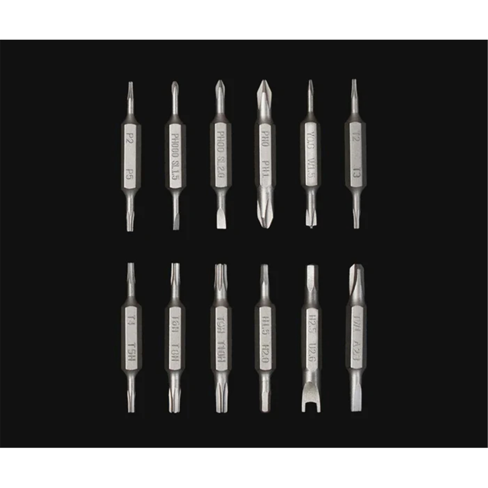 Phillips, Torx, Slotted, Hex, Pozidriv, Square, and Security. Find the most common double-ended precision bits. Flip and change magnetically, for daily repairs.