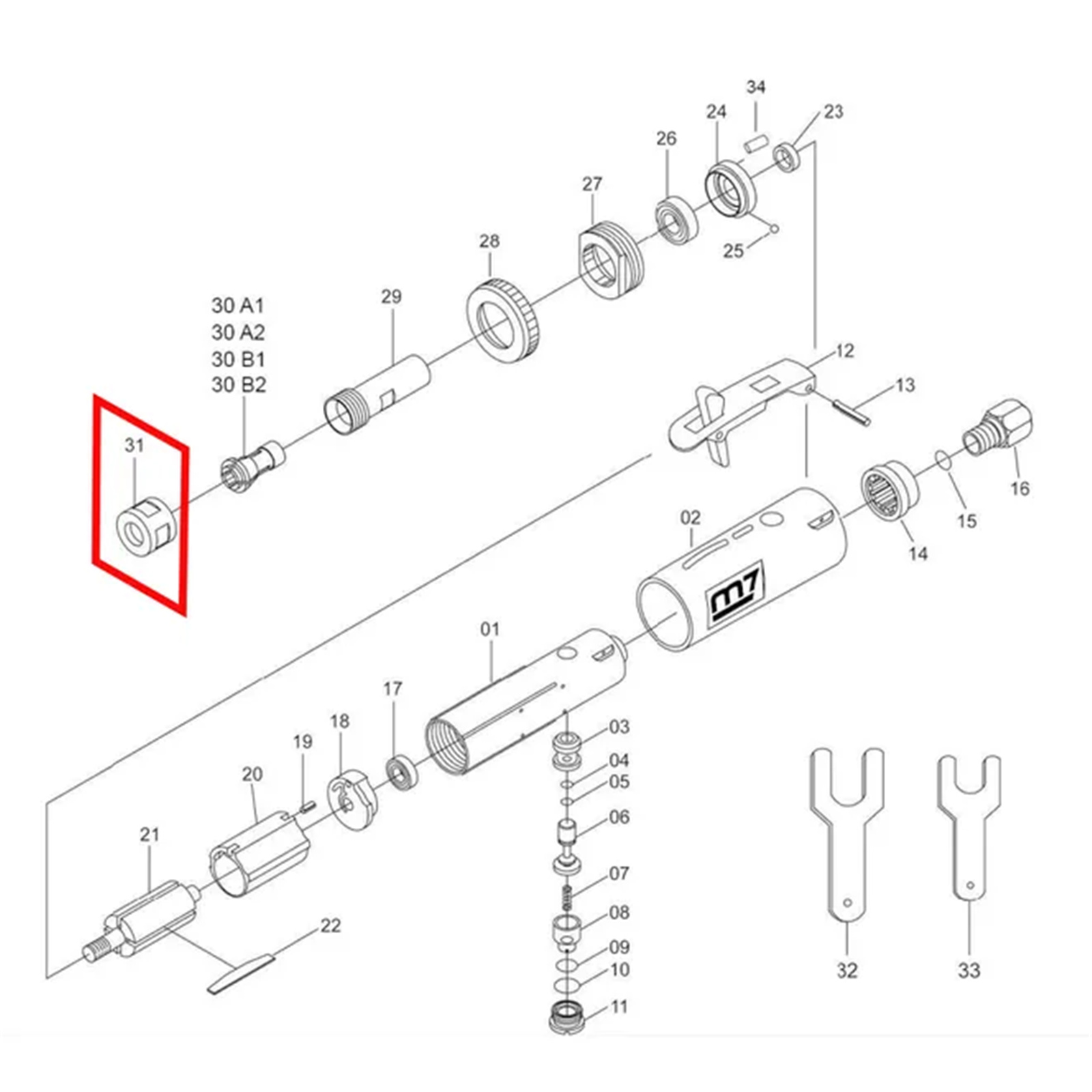 M7 QA-211P31 M7 COLLET NUT TO SUIT QA-211 DIE GRINDER