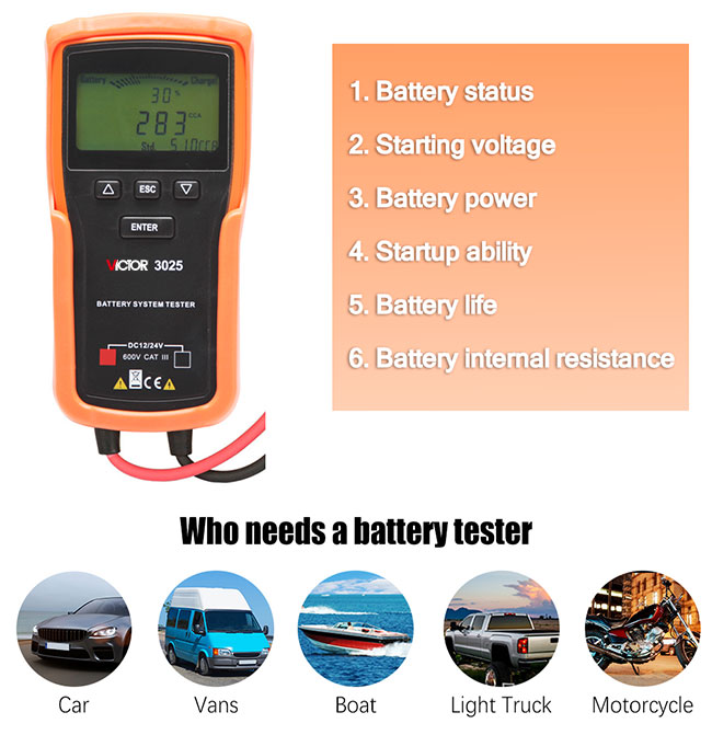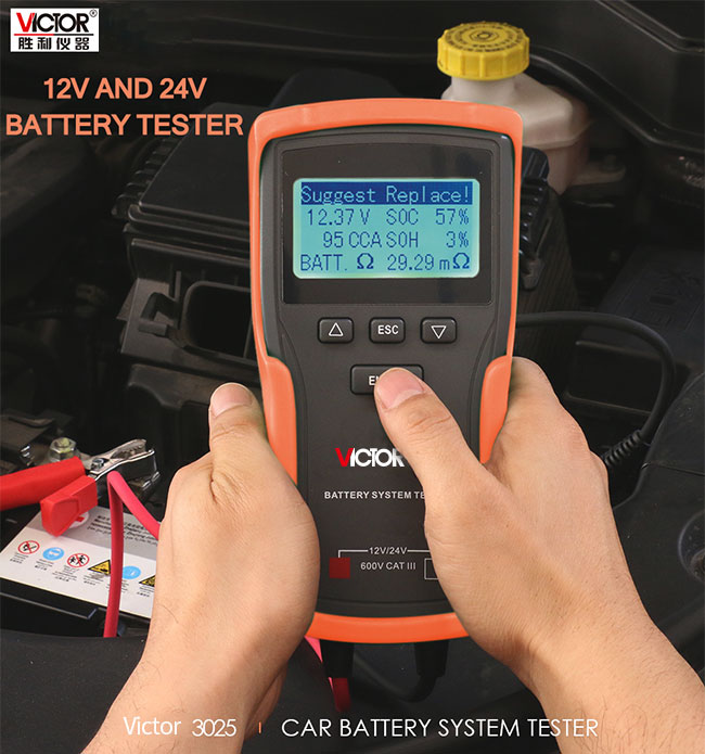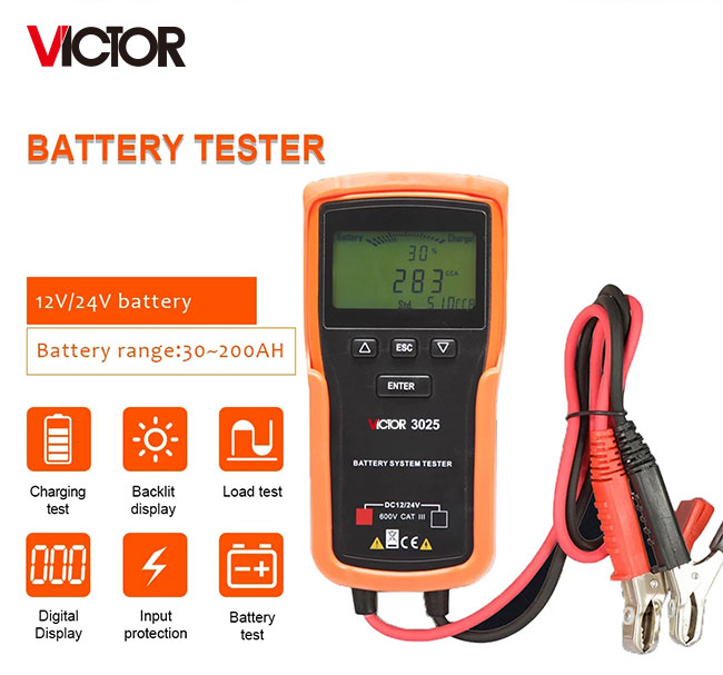 VICTOR 3015/3025/3026 Battery Tester 12V 24V Car Motorcycle Battery System Analyzer 100 - 1700CCA Cranking Charging Electrical Test Tools