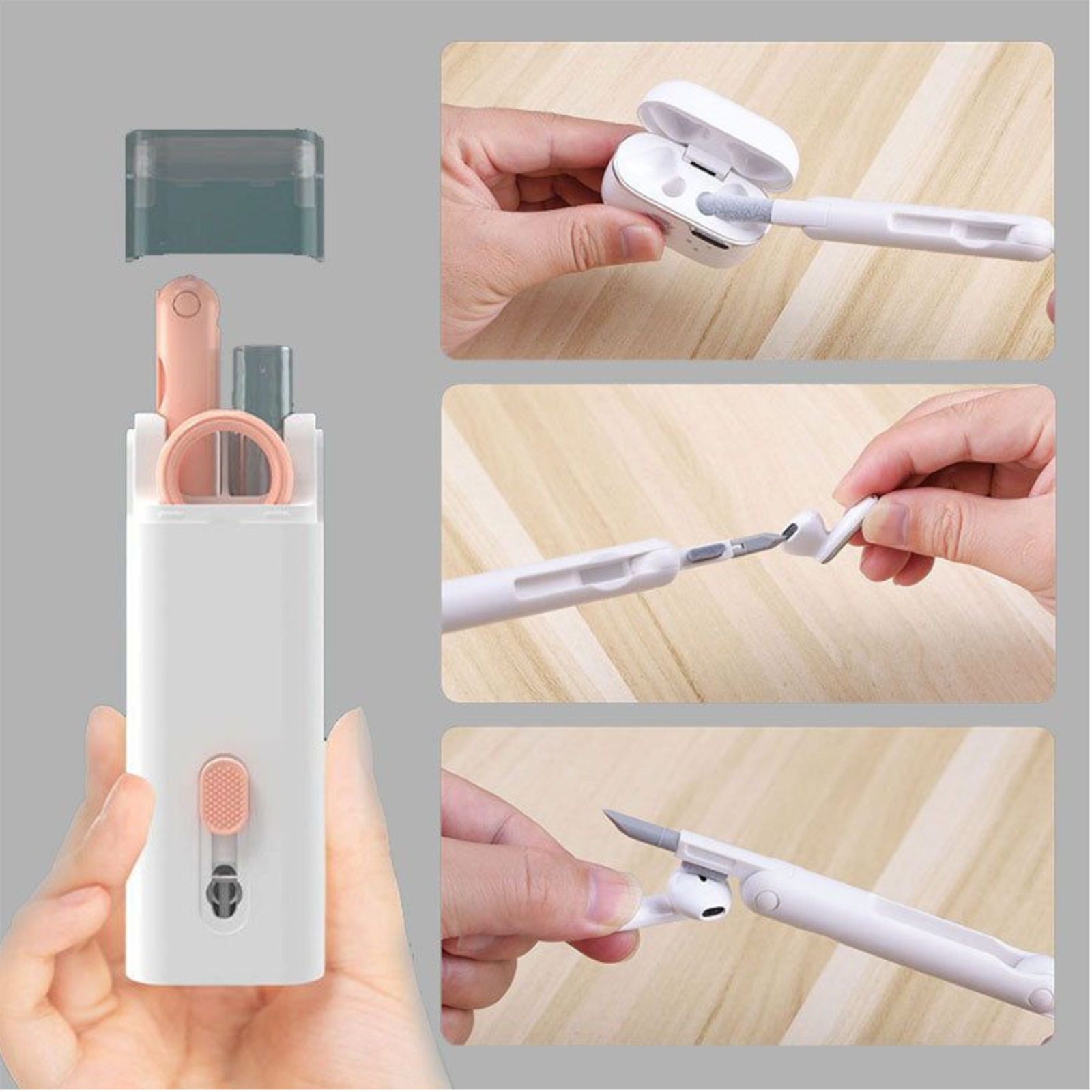 7-in-1 Q6E Multifunctional Cleaner Kit (Pink), For Airpods 3/2/1/Pro, Samsung Sony Beats Headphone, Mobile Phone, Laptop, Camera, Gaming Keyboard