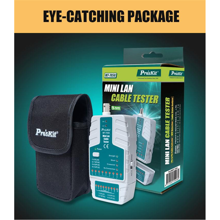 ProsKit MT-7058 Wire Tester Mini Lan Ethernet Cable Tester Multifunctional Network Cable Tester RJ45 RJ11 RJ12 Cat5 Cat6