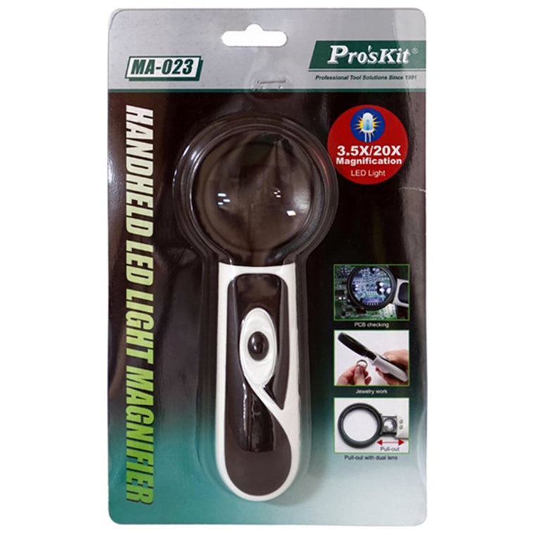 ProsKit MA-023 3.5/20X Handheld LED Light Magnifier Reading Magnifying Glass Lens Jewelry Loupe