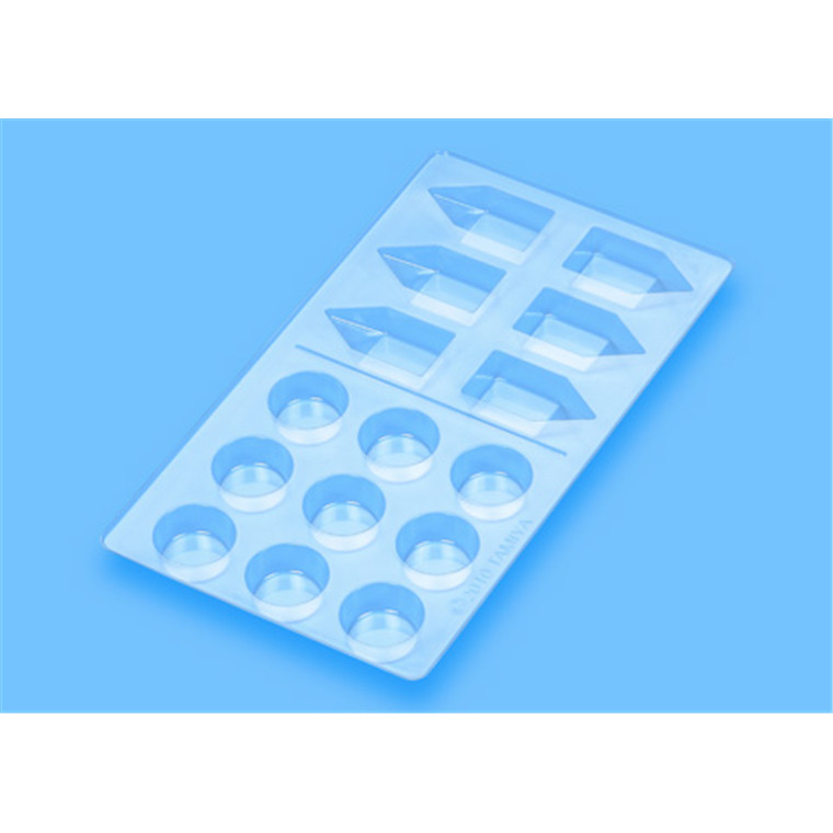 These Palettes are made of PET plastic and each palette contains 15 wells, including 9 round (Dia: 25mm/Depth: 9mm) and 6 five-sided (Depth: 9mm) sections. The palette is 0.3mm thick and each section can be easily cut away with scissors and be disposed of after each use.