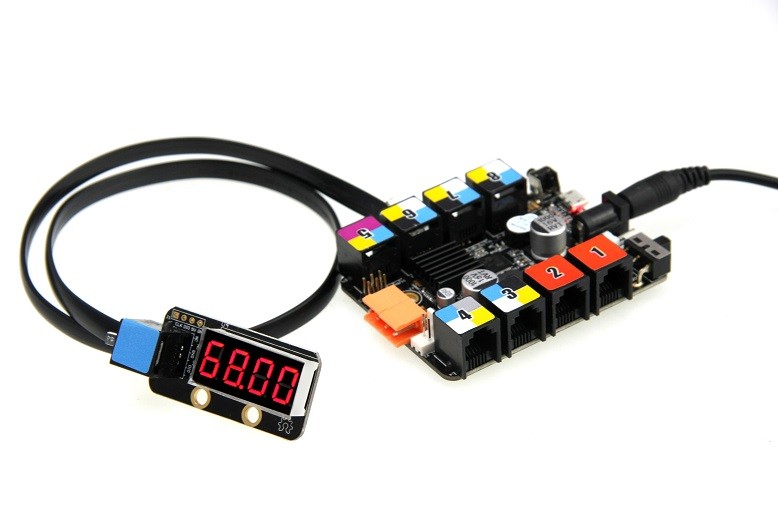 Me 7-Segment Serial Display is a classic 4-digit common anode 7-segment display, it usually used to display numbers and a few special characters. You can easily use it in your robot project to show speed, time, the value of sensors, or scores. Me 7-Segment Serial Display is based on chip TM1637, you can control each segment and decimal point individually. Controlling each segment is not a complicated work, we have provided Arduino library for easy programming.