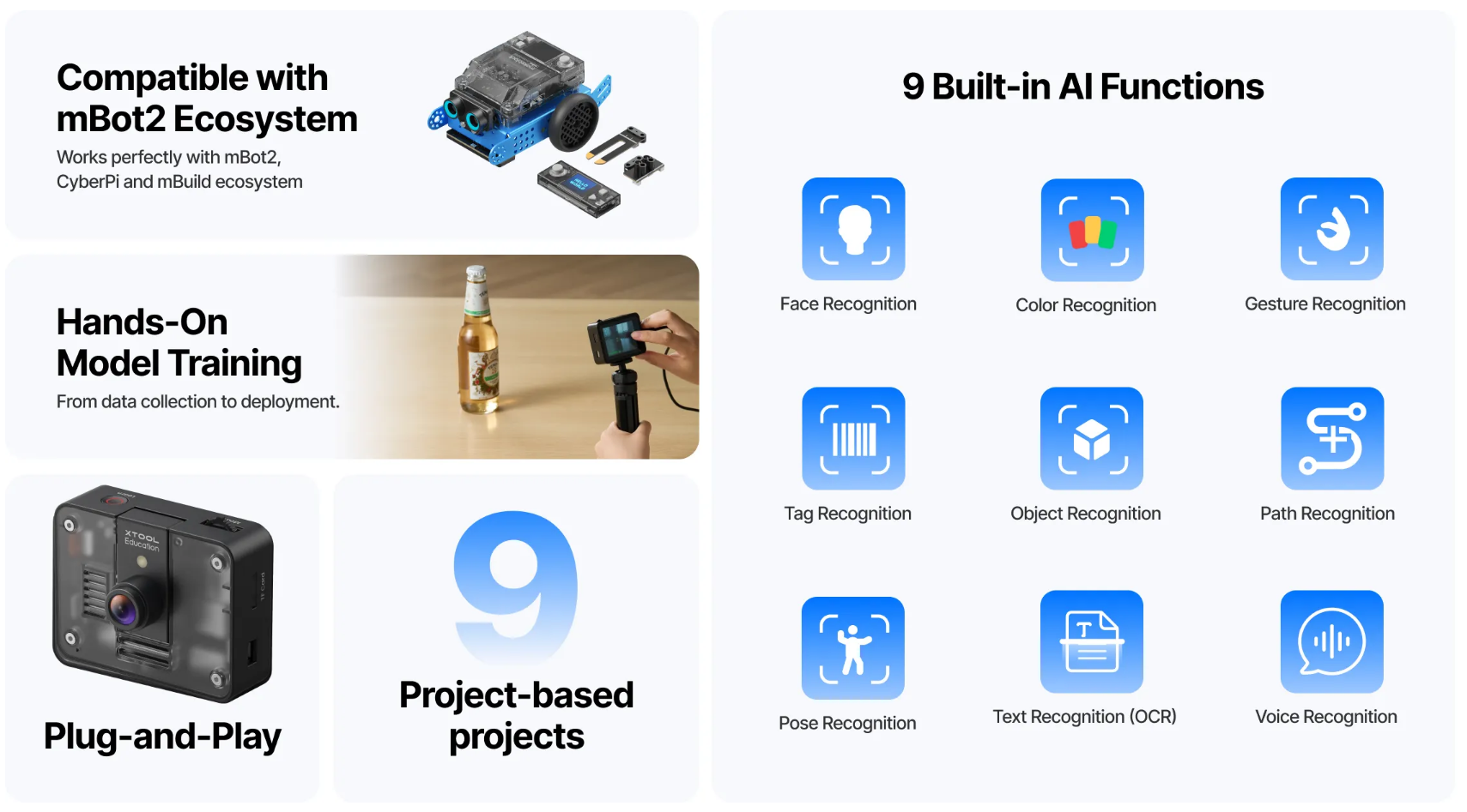 - Plug-and-Play Simplicity-Get started in under a minute! Simply connect the camera to your mBot2, CyberPi, or mBuild modules. Its seamless integration allows students to focus on learning and creation immediately, eliminating technical barriers.