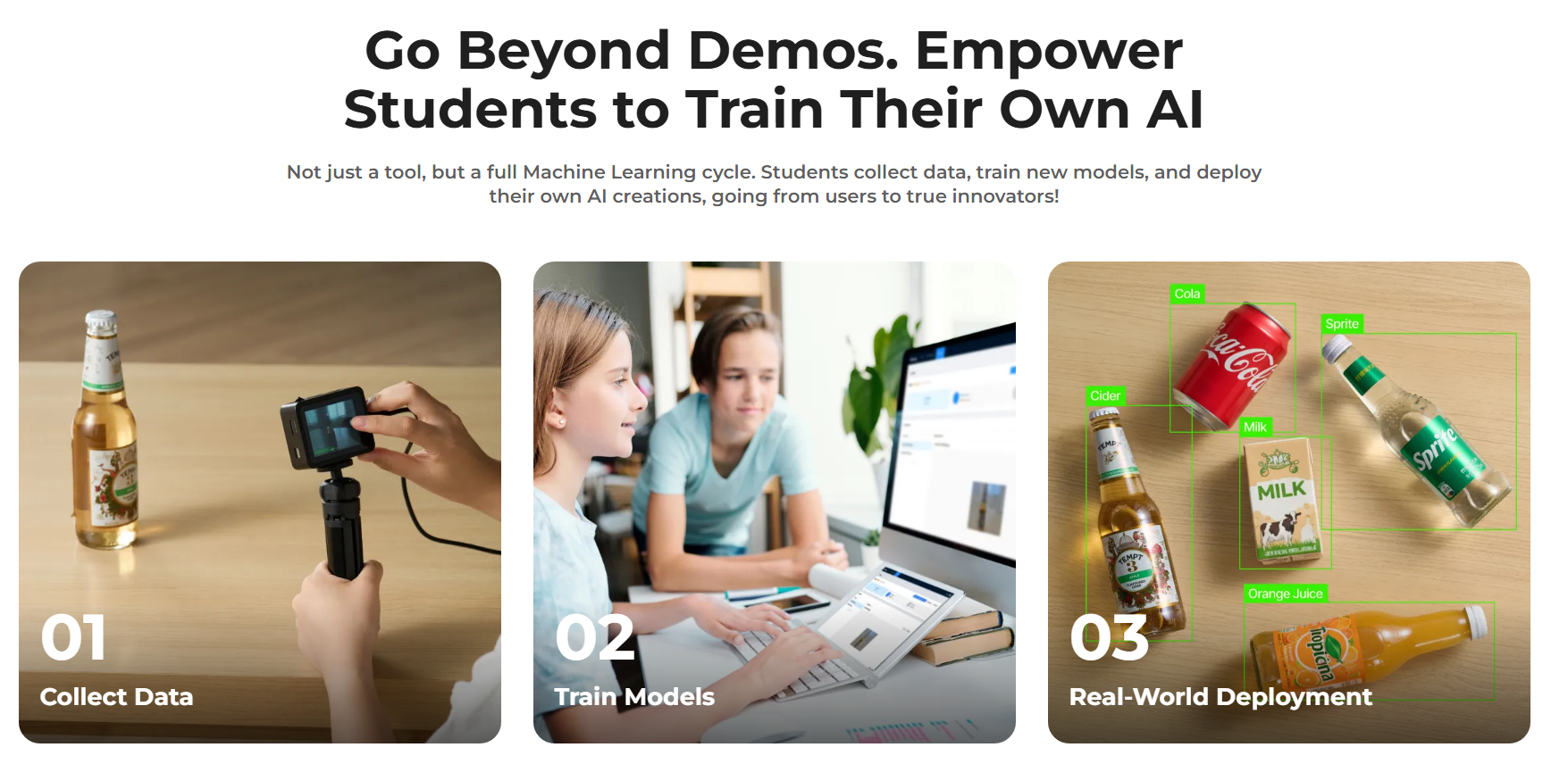 - From Using AI to Creating AI-Move beyond pre-set demos. This module provides a hands-on, closed-loop learning experience where students can collect data, train their own custom AI models, and deploy them to bring their unique ideas to life.