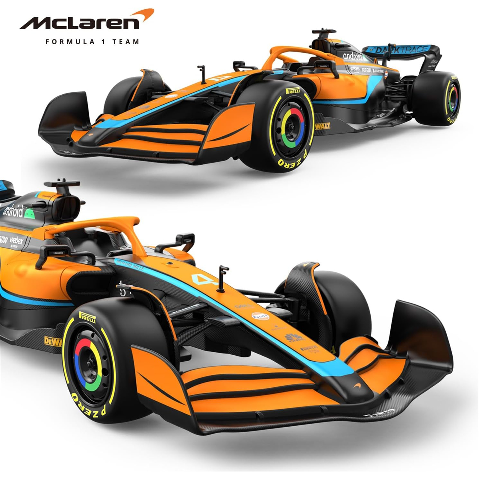- Highly-detailed replication of the McLaren MCL36 F1 features streamline design, adjustable wheel alignment, front shock absorbers, rims and rubber tires, metallic paint finish, etc. Rear power motor of high intensity magnetic together with differential mechanism makes the McLaren Formula One race model car run smoothly in sorts of terrains.