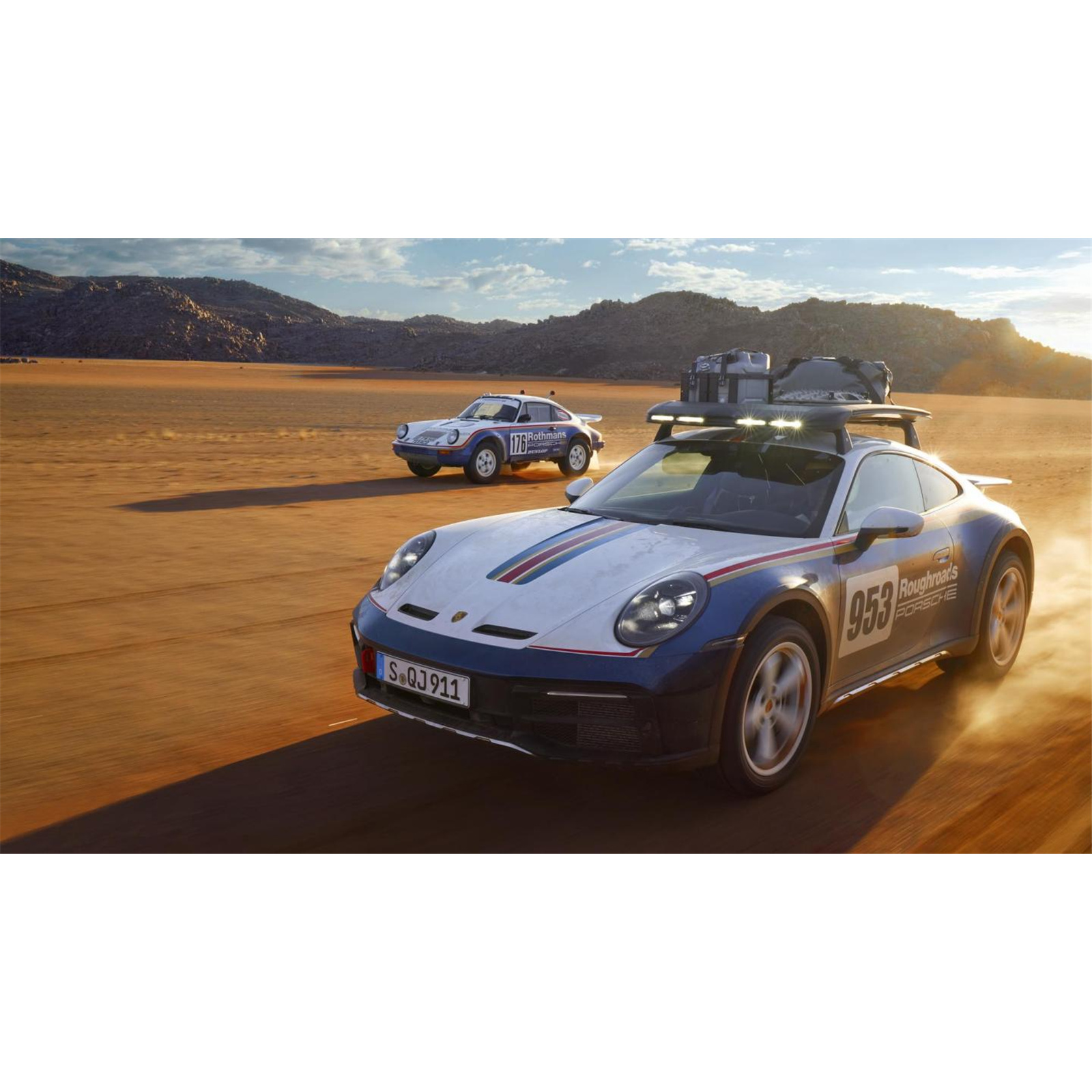 The Porsche 911, or nine-eleven for short, is Porsche's best-known sports car. The Porsche 911 made its racing debut in the 1965 Monte Carlo Rally. Since then, the off-road vehicles have been continuously developed and 911 racing cars have continued to compete successfully in the World Rally Championship. In 2023, Porsche presented a very special 911 offshoot: the Dakar Performance with all kinds of off-road technology and accessories. The dream of driving such a car yourself can now come true. With this officially licensed 1:14 scale deluxe car model, you can bring the feeling of owning a racing car like this into your living room. With LED lights at the front and rear, a detailed interior and perfectly reproduced original details on the chassis and bodywork, which have been lovingly realised, the vehicle also impresses with its high-quality workmanship. For example, the roof rack can be removed manually. With the ergonomic 2.4 GHz control centre in your hand, you can reach speeds of up to 11 km/h, just like in a real sports car. Easy-to-learn commands let the model do exactly what you tell it to. So, let's get racing on the floor of the children's room and let the fun begin.