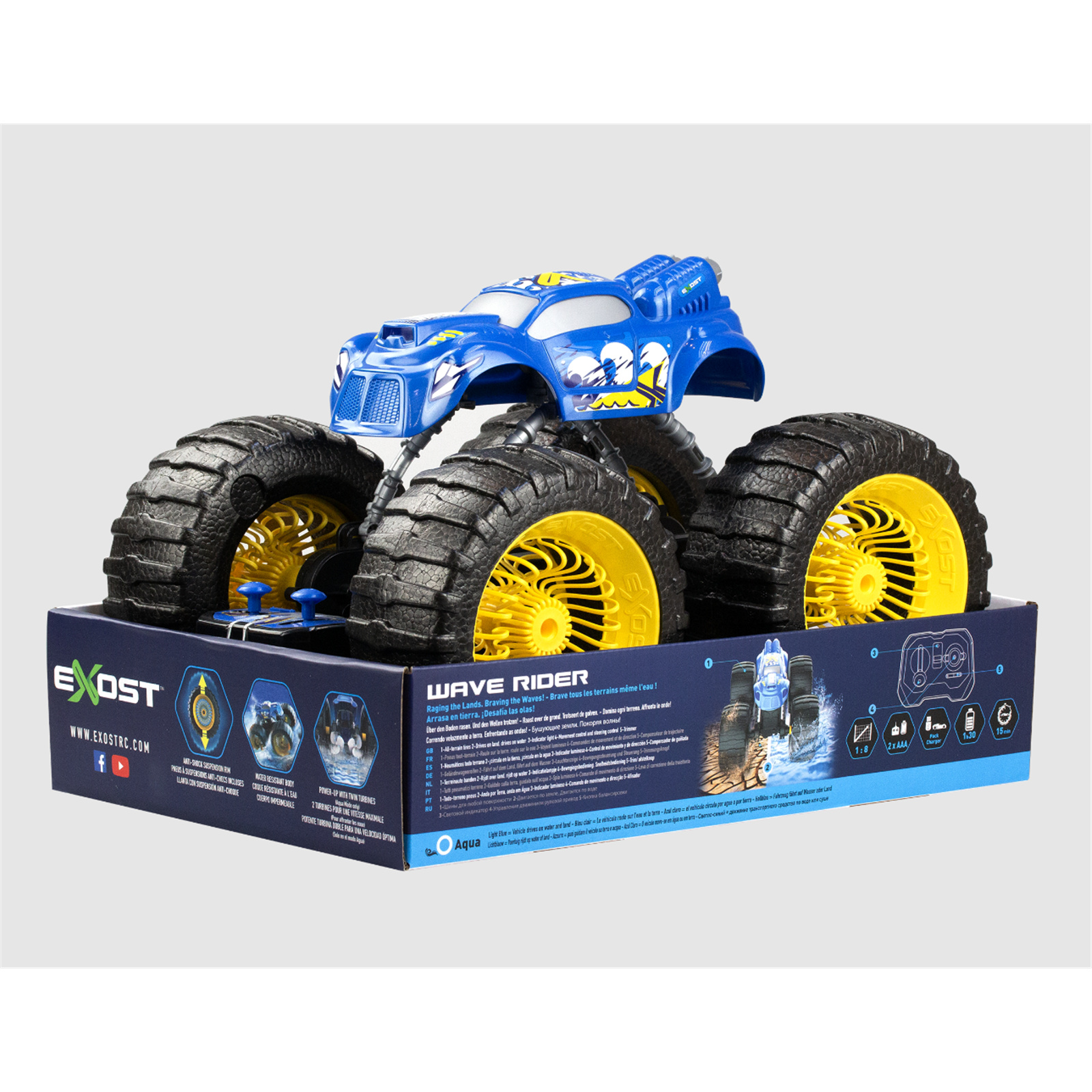 Silverlit EXOST 1:8 Black & Blue WAVE RIDER, 2,4 Ghz, R/C Anti-Shock Suspension Rim, Water Resistant Body, Power-Up with Twin Turbines - For Ages 5+!