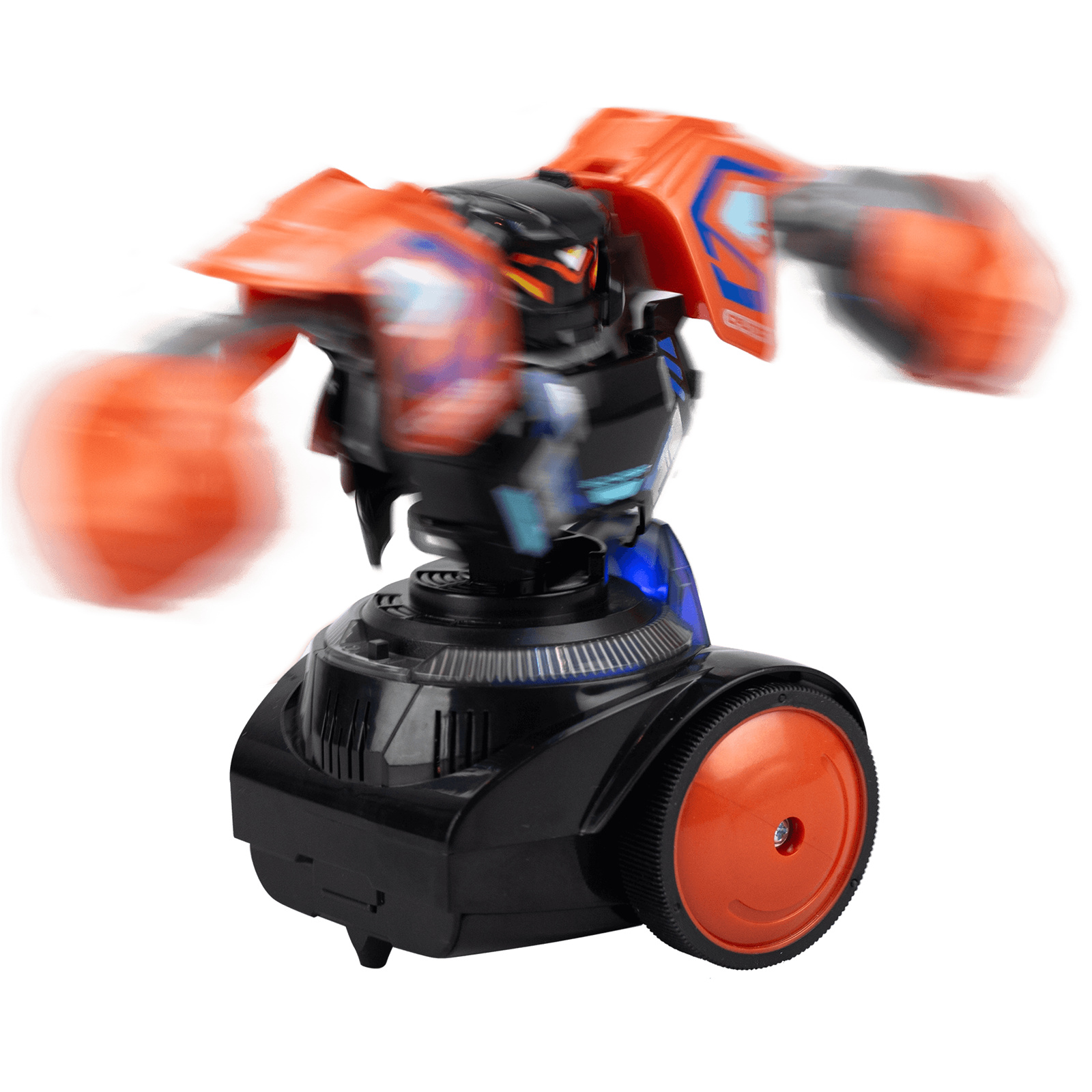 The Robot Kombat Tornado (red/orange) is the ultimate choice for fans of robot combat. With its incredible destructive power and 360° attack, this super-powered robot is designed to dominate its opponents on the battlefield. Supplied as a duo, it offers hours of fun and intense competition. With captivating sound and light effects, Robot Kombat Tornado turns every battle into an immersive experience.