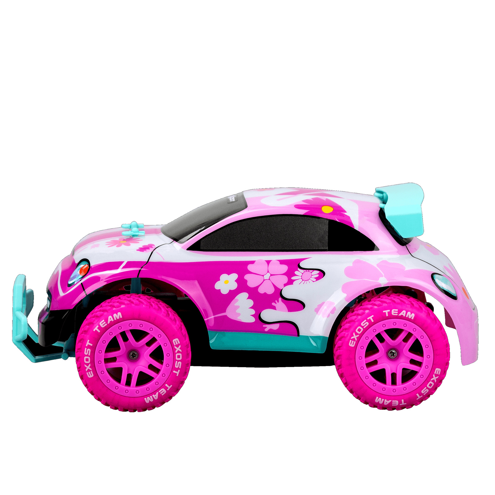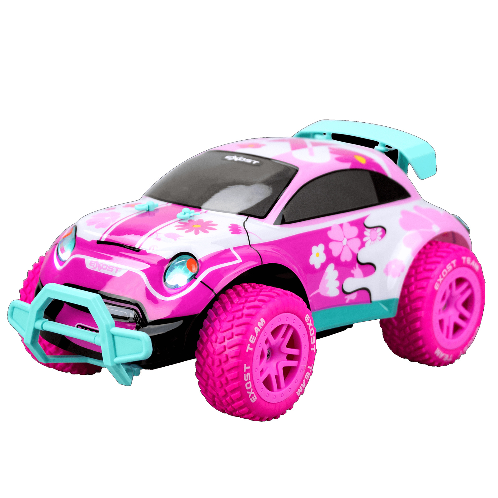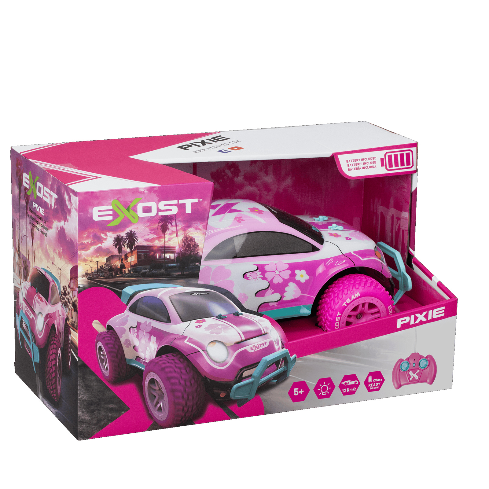 PIXIE is the most coquette car ever! Express your ultimate girl power with this inspiring vehicle. Full control with durable tires for difficult terrains. LED lights for head lights when you turn it on. Show your attitude with unique EXOST car body design, and realise the batteries are included and therefore ready to play!