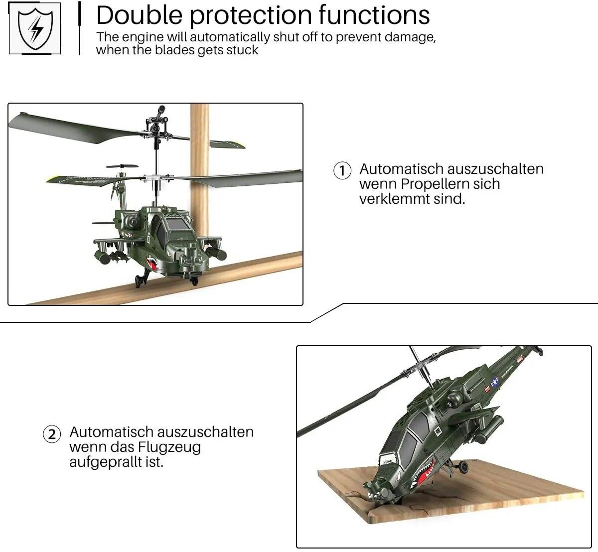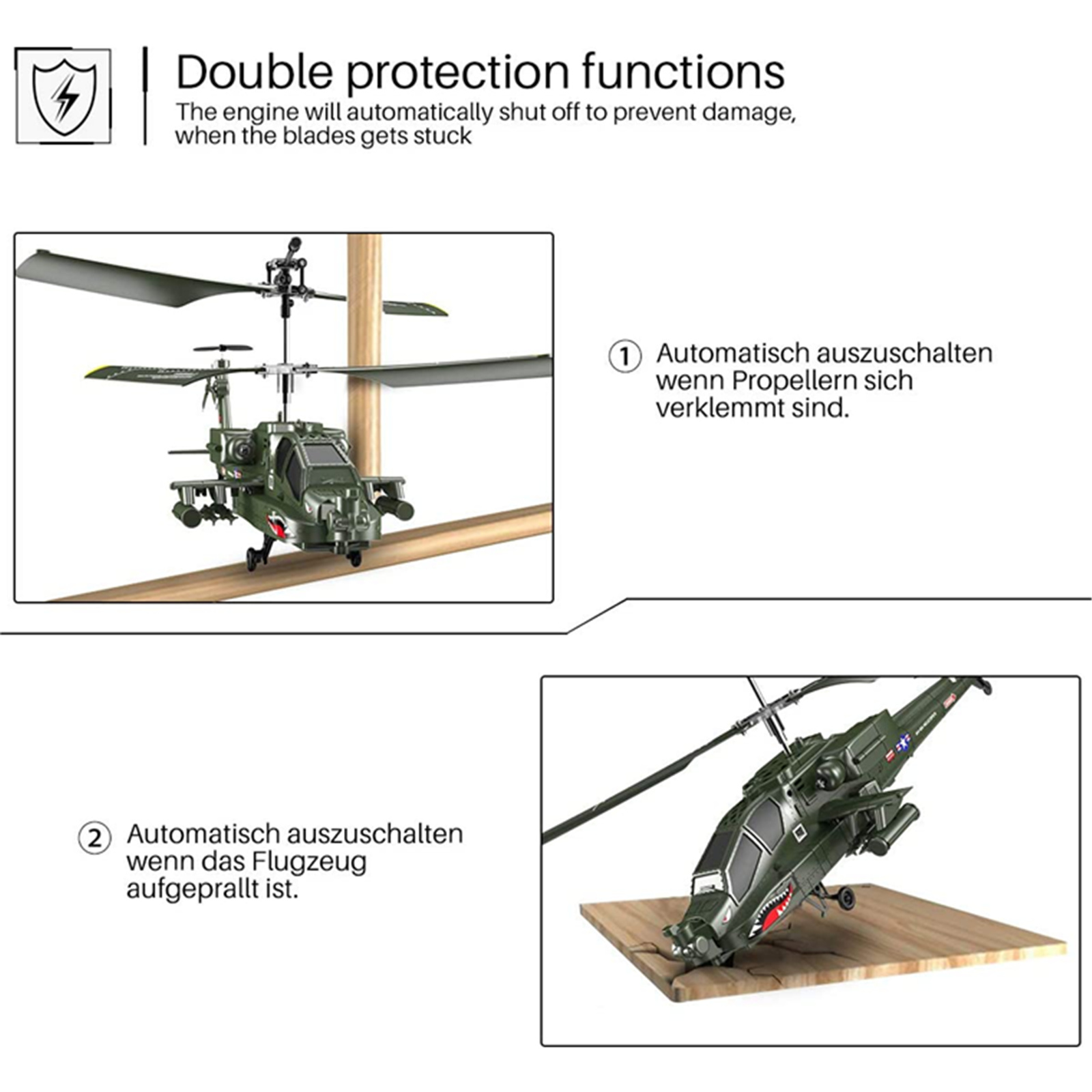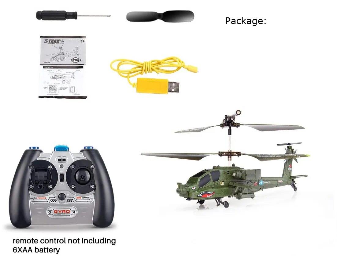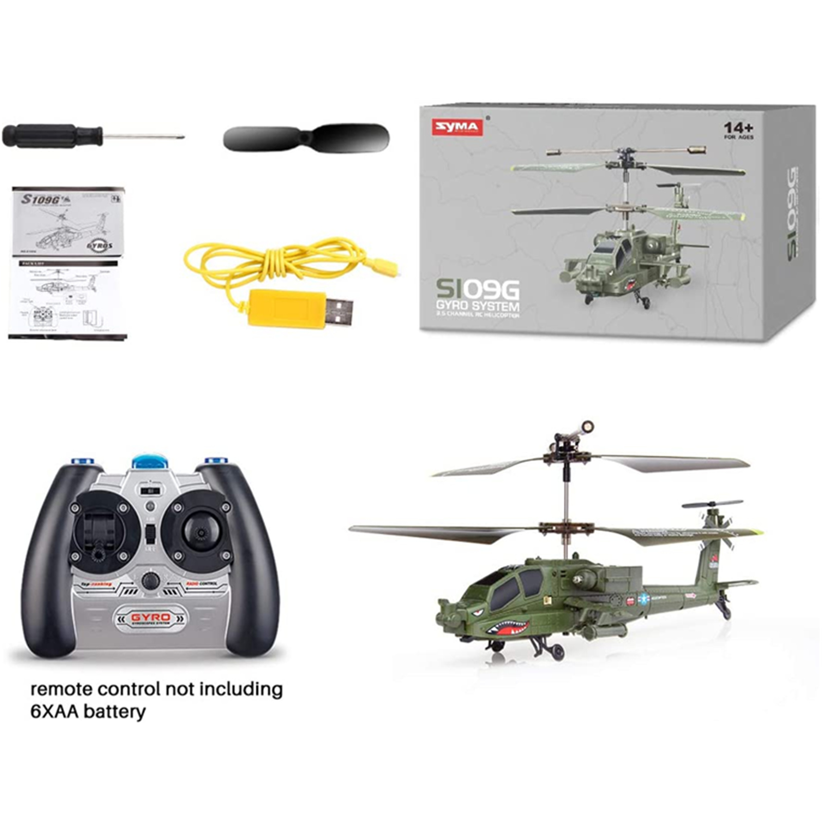 Syma Military Helicopter S109G 3 CH Simulation Helicopter - Green RC with Gyro System Anti-fall - Brush Motor - LED Indicator - For Ages 14+!