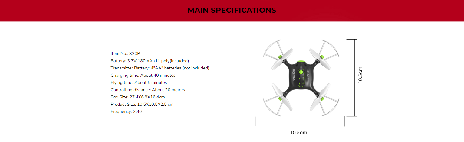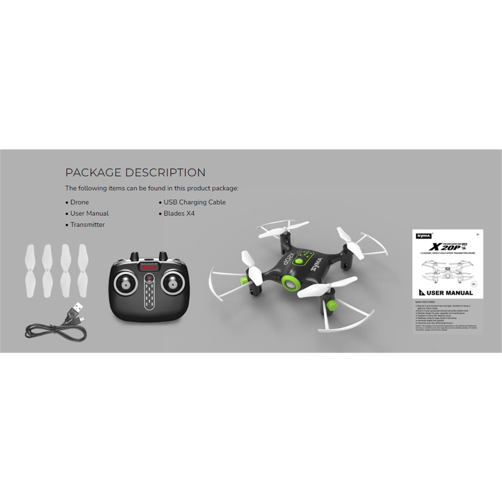 Product URL: https://www.pbtech.co.nz/product/TOYSYA0014/Syma-RC-Mini-Drone-X20P-4-CH-Remote-Control-Quadco?is-review=1