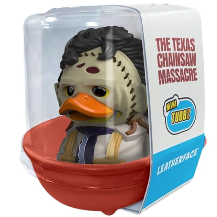 The TUBBZ Mini Edition Leatherface Cosplaying Duck Figure from The Texas Chainsaw Massacre is a unique collectible that transforms the iconic horror film character into a charming, rubber duck vinyl. By combining pop culture with playful design, these figures appeal to enthusiasts of both horror movies and quirky collectibles.