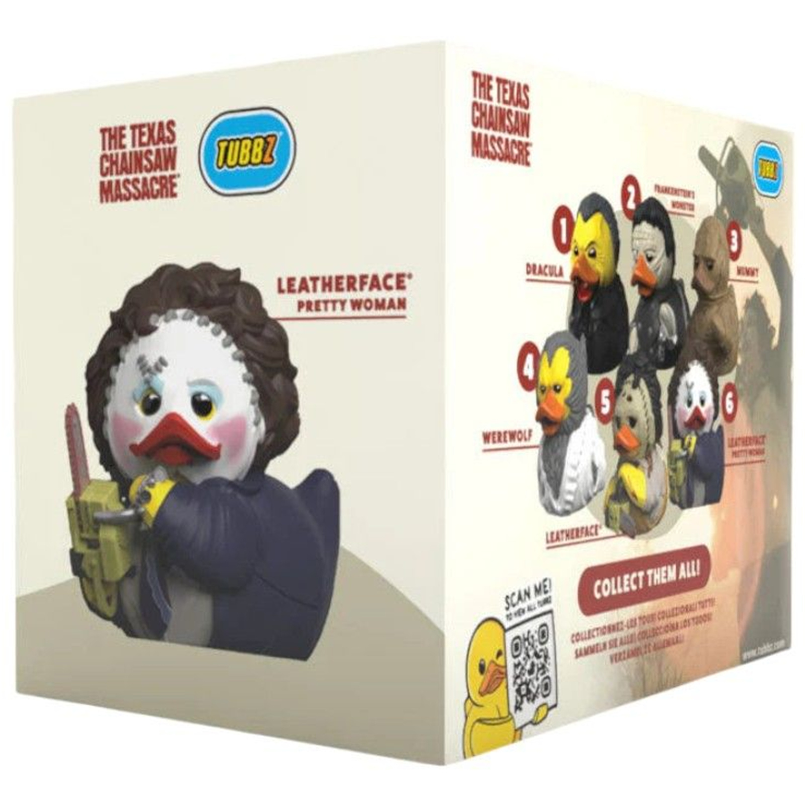 With Tubbz Texas Chainsaw BOXED Pretty Woman, Leatherface's most haunting look is transformed into an unforgettable collectible duck. Rendered with the infamous mask, distressed dress, and chainsaw in hand, this figure is both eerie and elegant-bringing a chilling sense of cinematic nostalgia and TUBBZ humor to any horror lover's display.