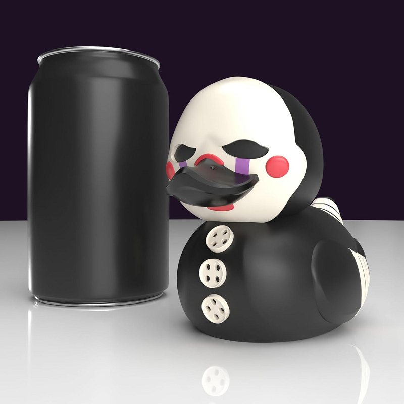 The Tubbz FNAF BOXED Marionette presents one of Five Nights at Freddy's most spine-chilling animatronics in collectible duck form. Slipping out of the prize box and into your shelf, Marionette's signature spectral mask, haunting tear tracks, and bold striped limbs are faithfully captured-turning eerie silence into a showstopping, fear-inducing collectible.