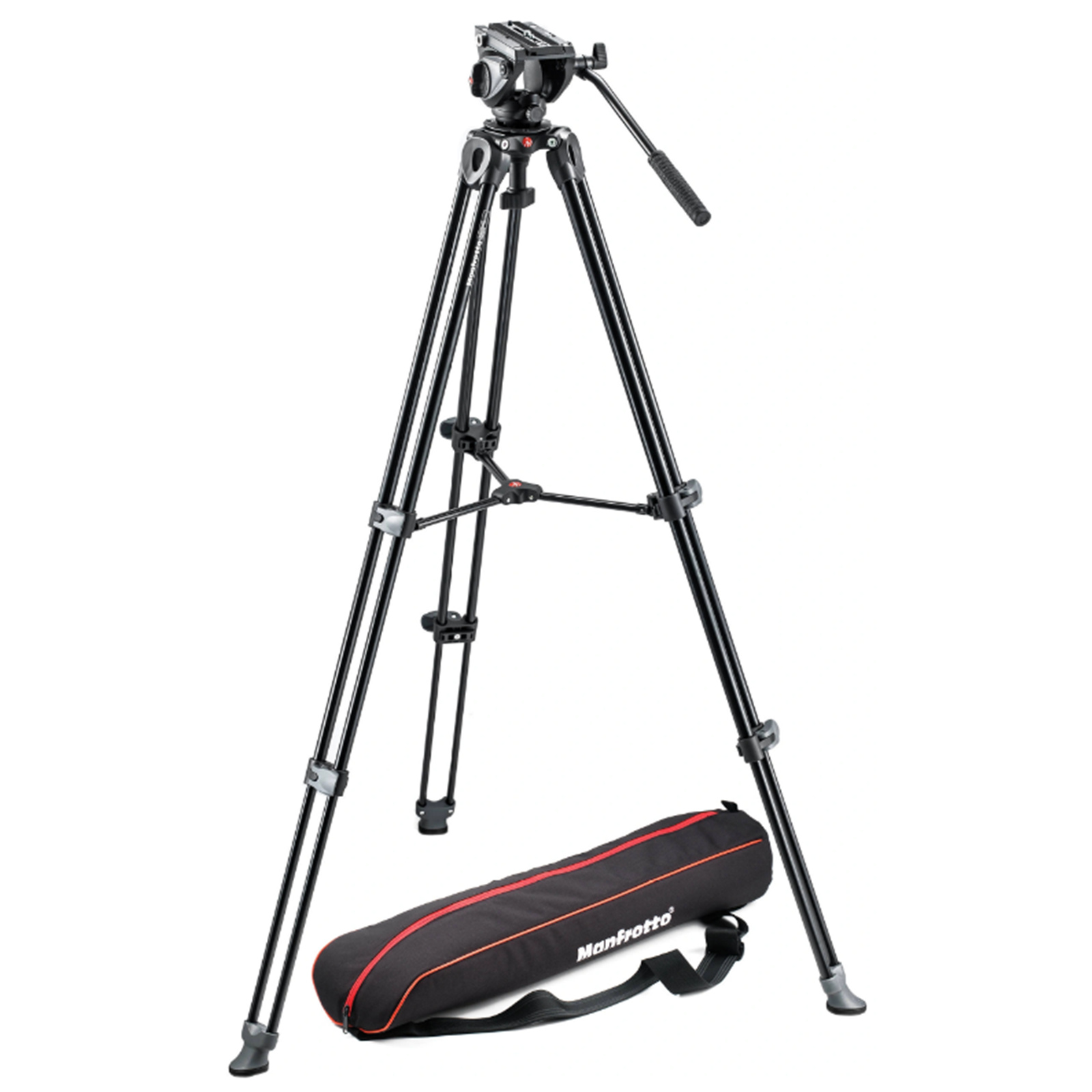 The Manfrotto MVH500A Fluid Drag Video Head with MVT502AM Tripod and Carry Bag features a a fluid head with a wide platform to support the HDSLR form factor, and a 60 mm half ball for quick leveling without adjusting the legs.