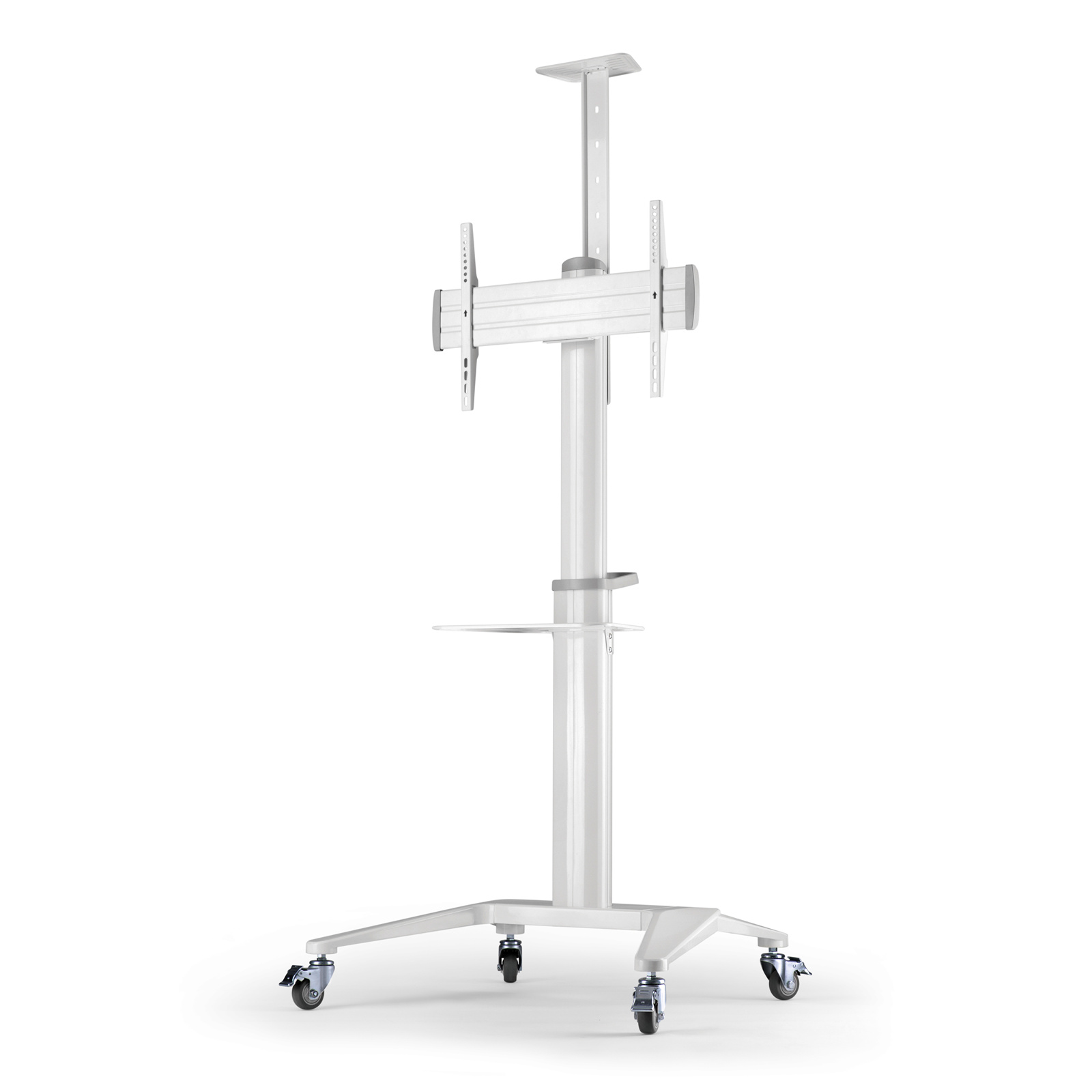 KONIC 37"-70" Ultra-Modern Aluminum Mobile TV Cart Trolley - White - Weight Up to 154lbs - Max 600x400mm VESA - Landscape/Portrait Orientation
