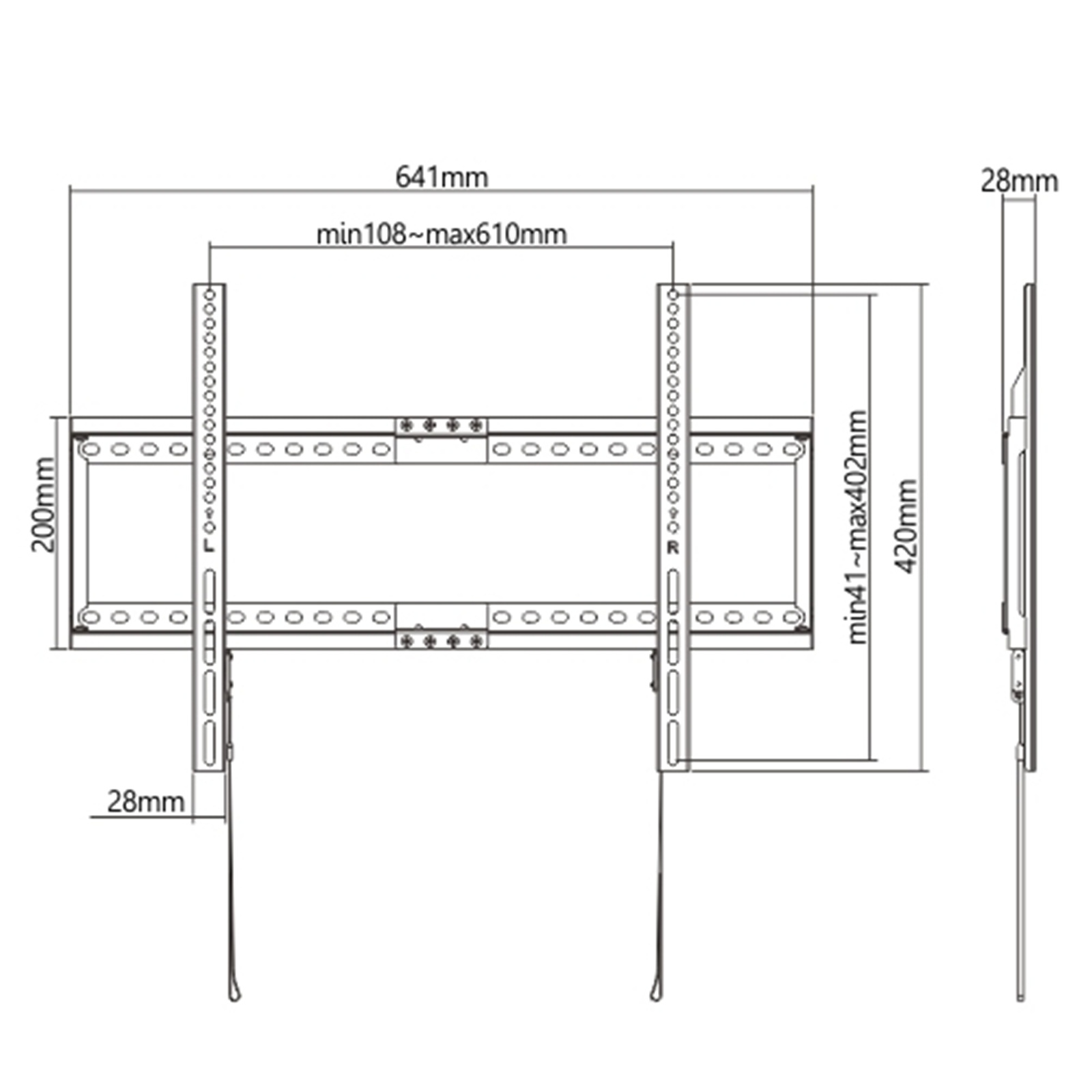 The KLG246F TV wall mount includes popular accessories needed to install and mount most 37''-80'' curved/flat panel TVs weighing up to 75kg/165lbs.Spring locks with release straps allow users to lock or release TV in a snap. Best of all, packaging is optimized for online sellers that desired the lowest shipping and storage costs. It features an open design which maximizes airflow to equipment and provides easy access to the back of components.