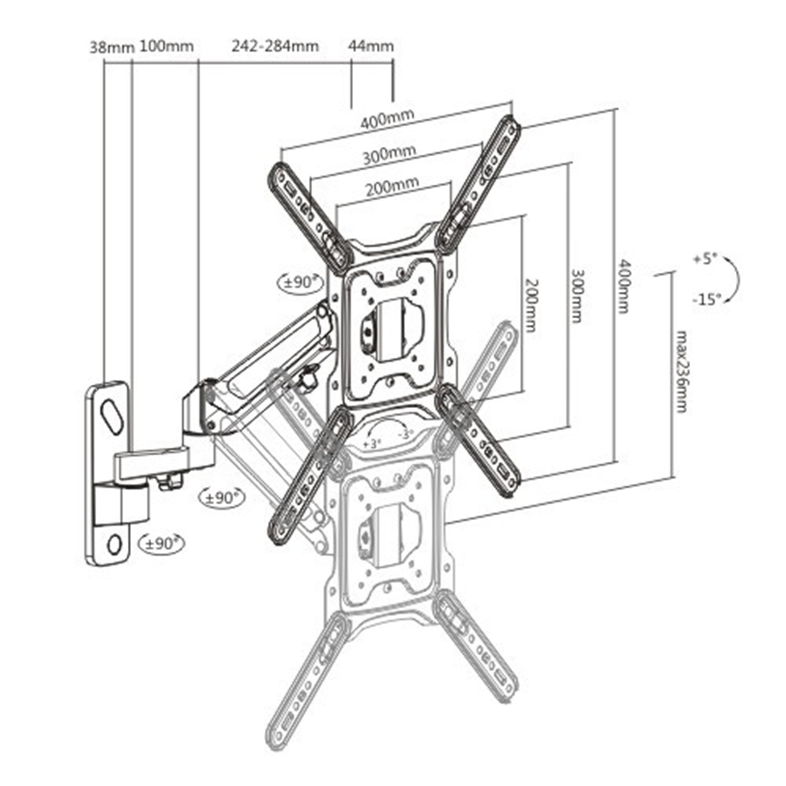 KDC3442 is an aluminum full-motion gas spring TV wall mount that can tilt, swivel and level to the desired position with a great price. Whether you are binge watching, or watching your favorite TV show in your kitchen, the KDC3442 can meet all your demand. Also, the mount can extend to 466mm/18.3" for maximum flexibility. You won't want to miss it!