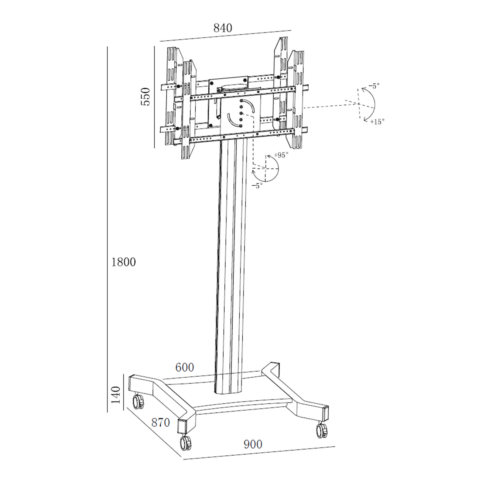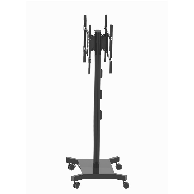 This dual display screen mobile cart includes 2 TV brackets for displaying on screen in portrait or landscape, it can be also installed in front and rear display mode. Each mount bracket is capable of rotating to orient the LCD monitors in either portrait or landscape view. The TV cart is equipped with 4 casters, which can easy to roll and then lock into place in office or reception or public place.