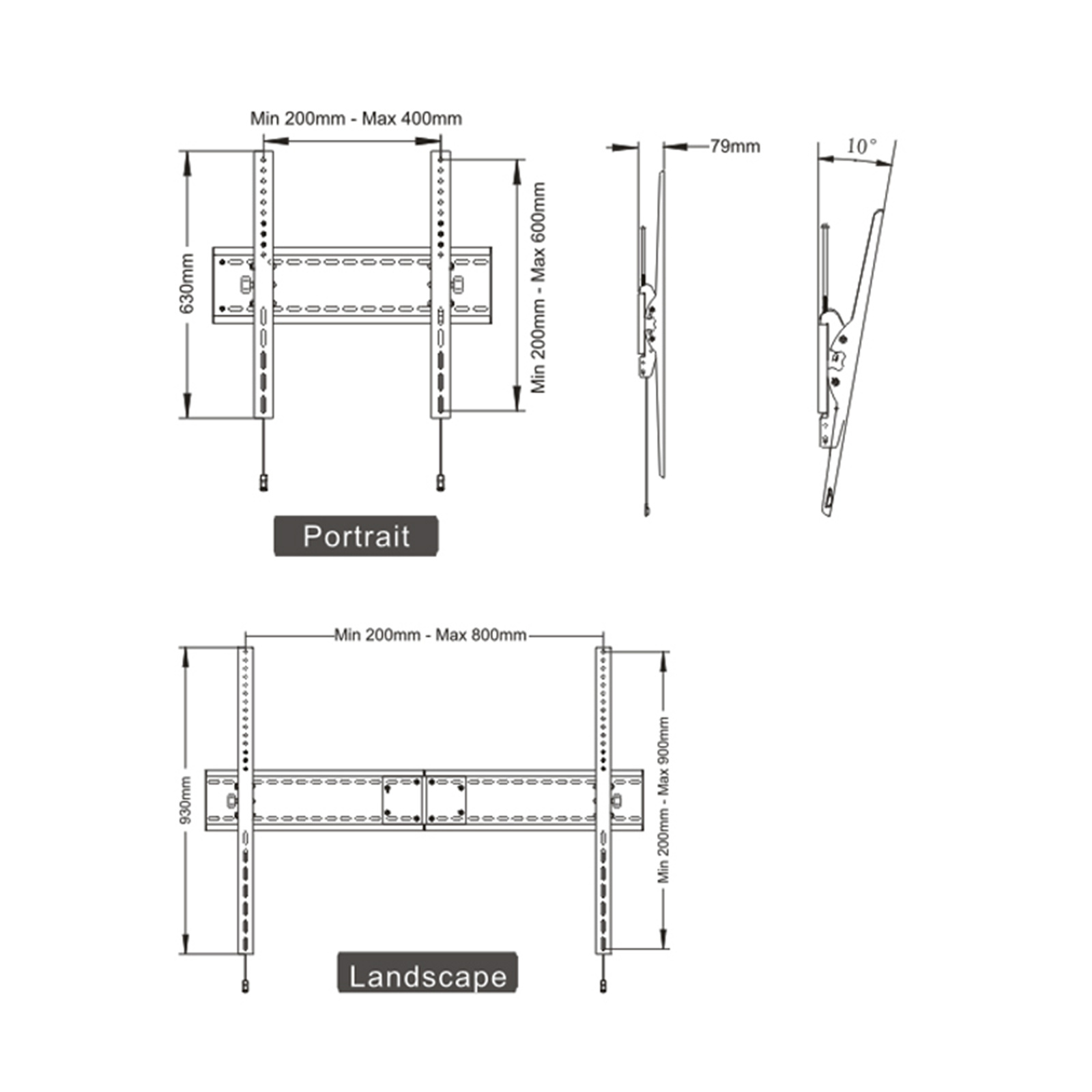 This Heavy Duty TV wall mount securely supports a TV up to 65"-110" and supports weightning up to 125kg with Max VESA 800x600 Landscape, Max VESA 400x600 Portrait