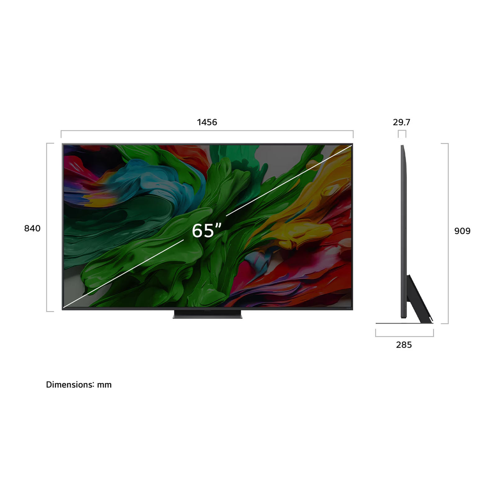 TV Dimensions without Stand (WxHxD, mm)