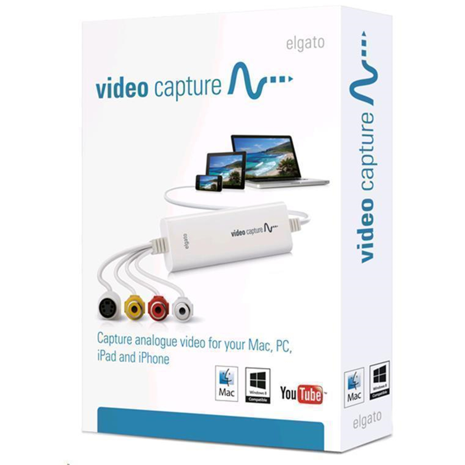 Transfer video to your Mac or PC from a VCR, DVR, camcorder, or any other analogue video device as a high quality H.264 file. Elgato Video Capture's easy-to-use software assists you through every step, from connecting an analogue video device to capturing video and choosing how you will watch and share it.