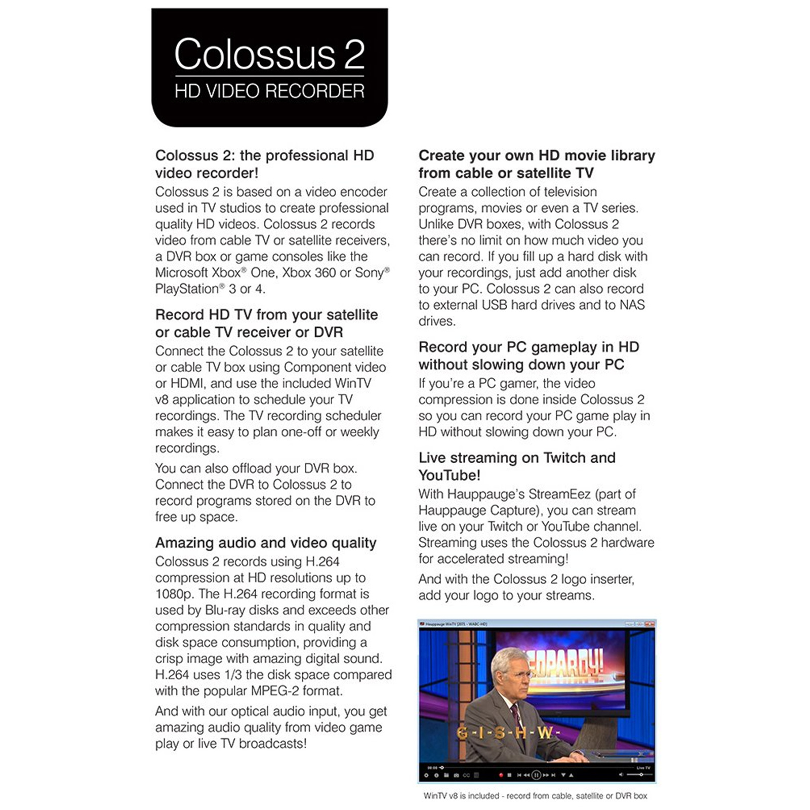 Colossus 2 with WinTV v8 and Hauppauge Capture applications
