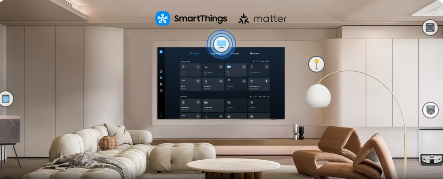 With a built-in smart hub, your TV can connect and control smart devices - even those requiring Matter and HCA compatibility. You can also get notifications about your devices straight from the screen, including a 3D Map View that shows your entire smart home system at a glance.