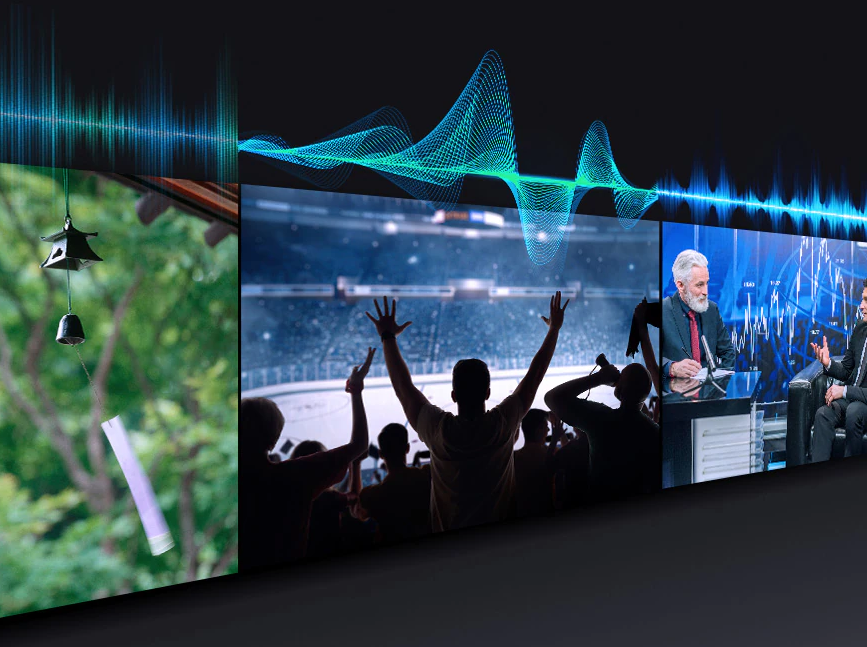 Enjoy clear dialogue, no matter what's going on. Our AI technology enhances voice clarity by analyzing ambient noise and background sounds from your content.