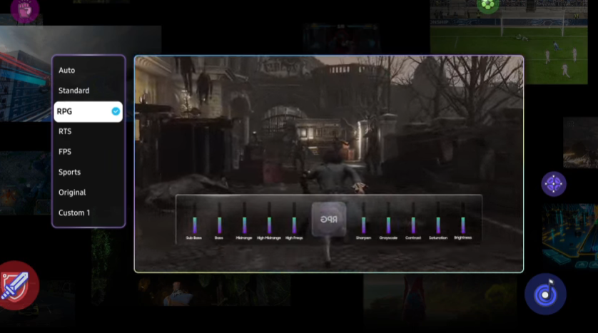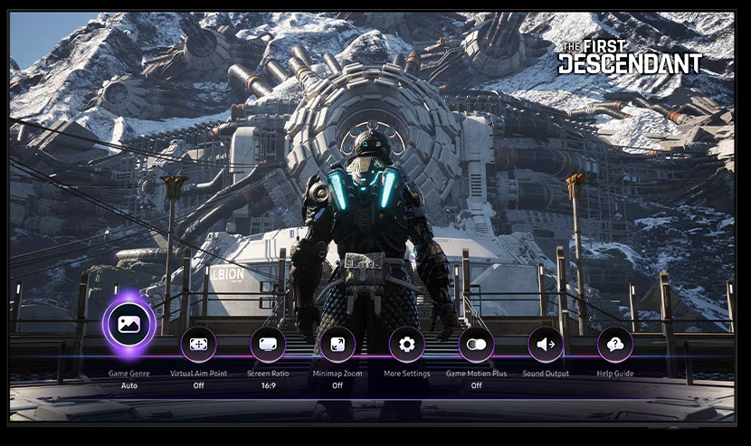Optimise your gameplay even more with Game Bar*. Samsung TVs give you a handy in-game menu for settings like FPS, input lag, minimap zoom and more. It also lets you apply ultra-wide aspect ratios of 21:9 and 32:9 to expand your view on bigger screens.