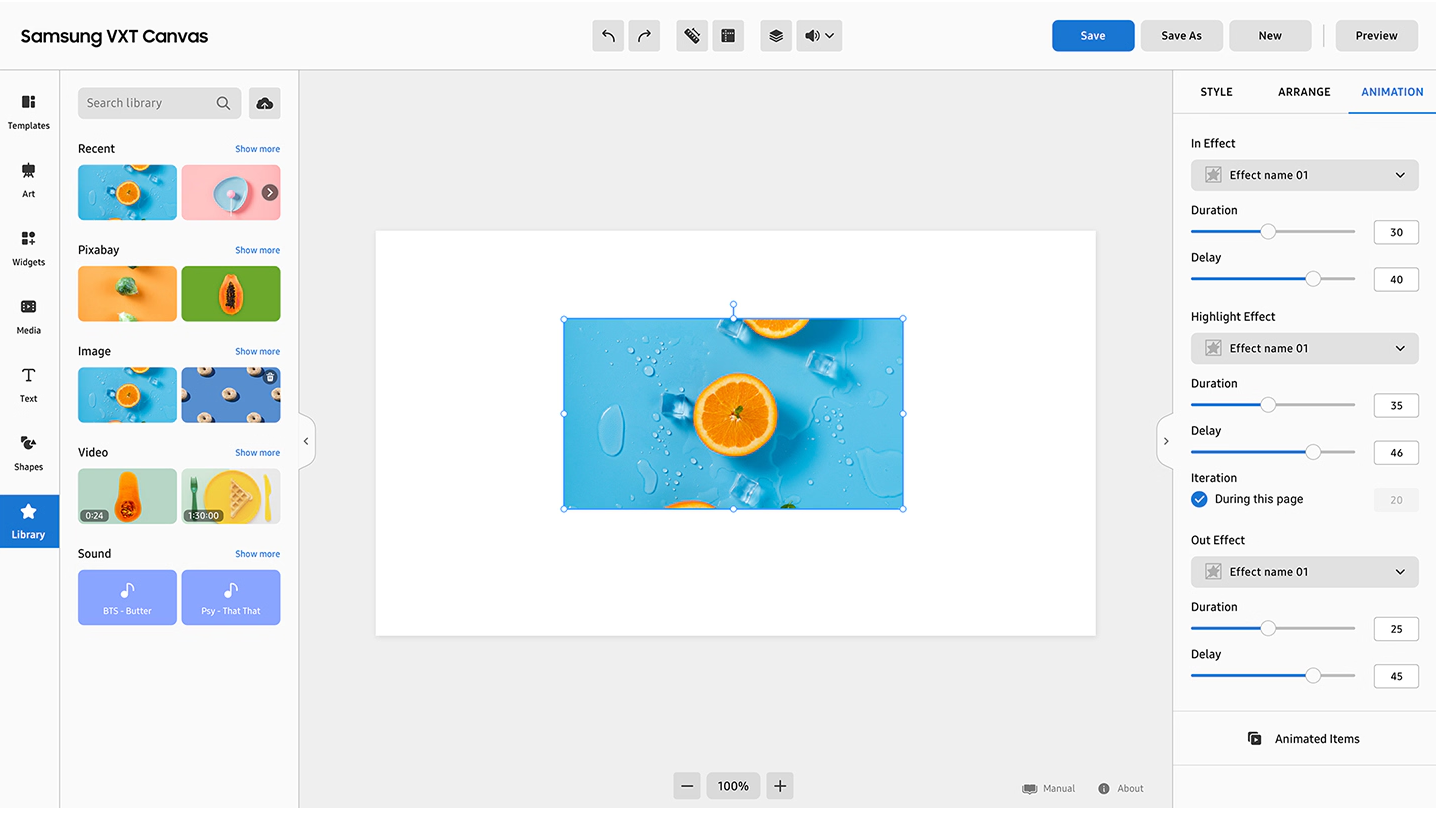 Available on Android or iOS mobile device, the Samsung Business TV app effortlessly allows users to remotely manage, schedule and display customised content. Additionally, users can easily create eye-catching visuals using a variety of ready-to-use content templates.