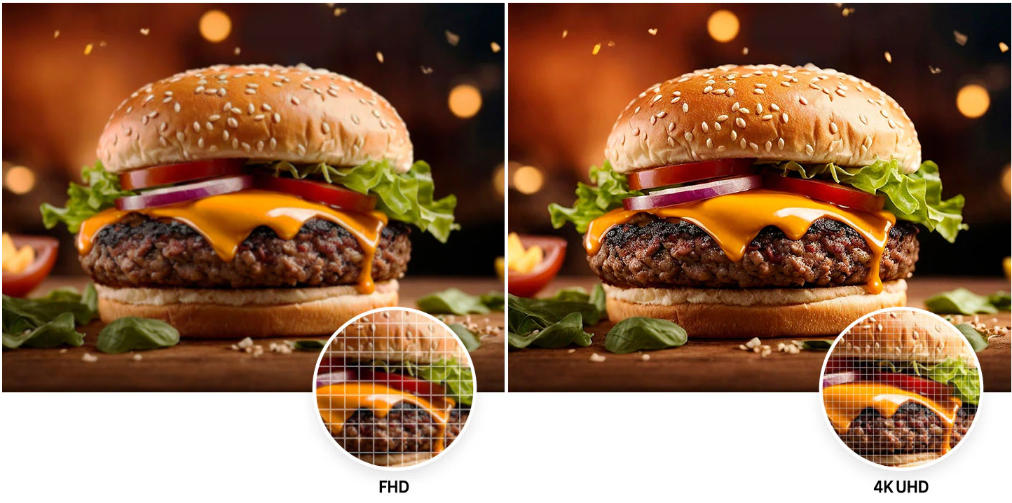 Make out every small detail in each image. 4K UHD resolution has 4x more pixels than regular FHD resolution creating sharp, ultra-realistic images.