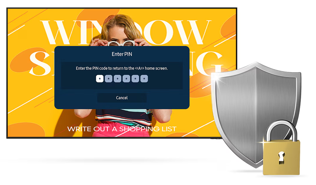 Lock your TV with a pin-code security system, preventing unauthorised users or outsiders from tampering with the screen. This minimises the chances of unforeseen accidents, while ensuring that only the content you have selected is played.
