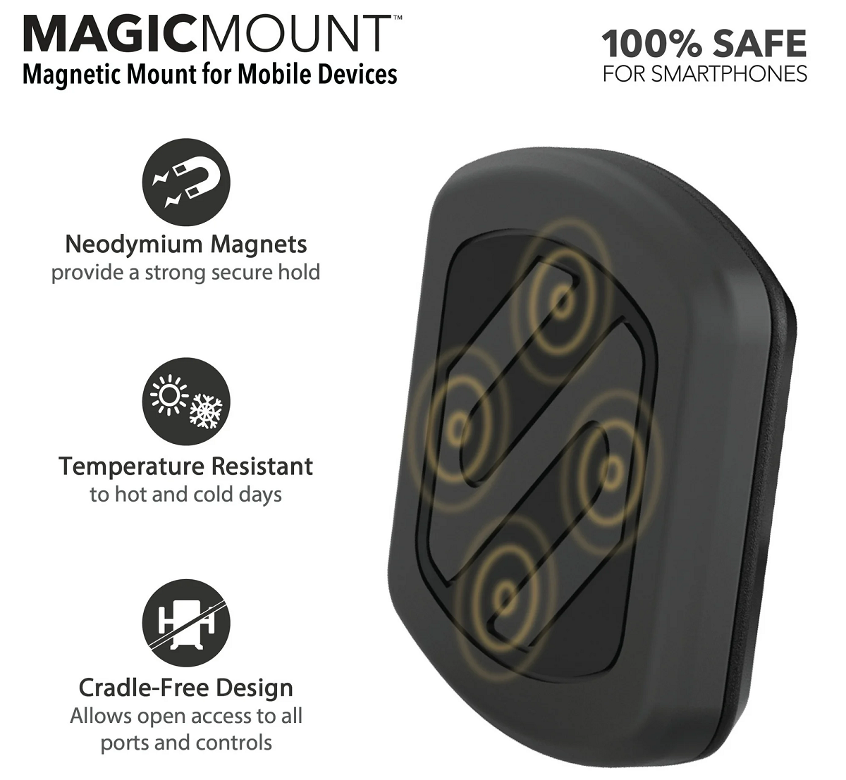 Ensure a strong magnetic hold by placing the MagicPlate directly on the outside of your phone or case. For best results, wait 24 hours before using the car mount. All devices must use the included plates; not compatible with MagSafe.