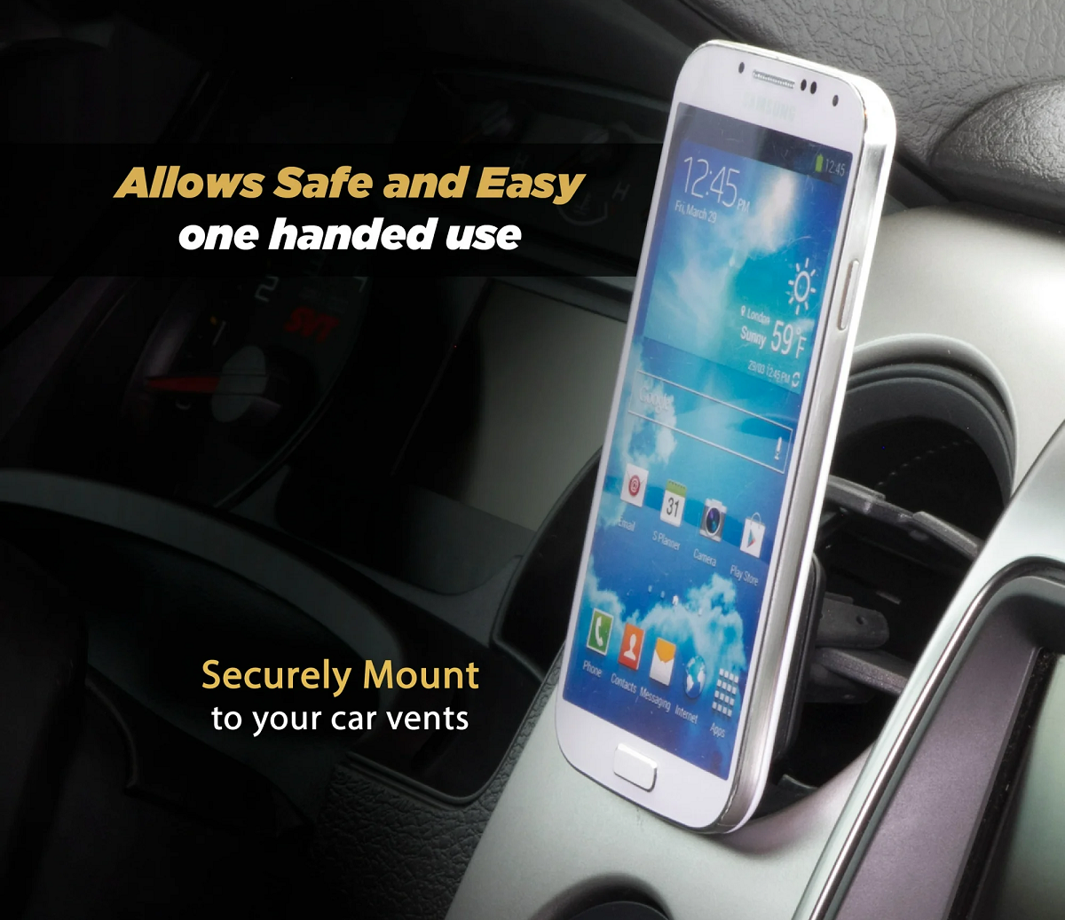 This magnetic car phone holder is easy to use and fast to install. Our compact cell phone mount is low profile and lightweight. The flexible vent clips have a strong hold to most air vents and will not slip or flop around while driving.