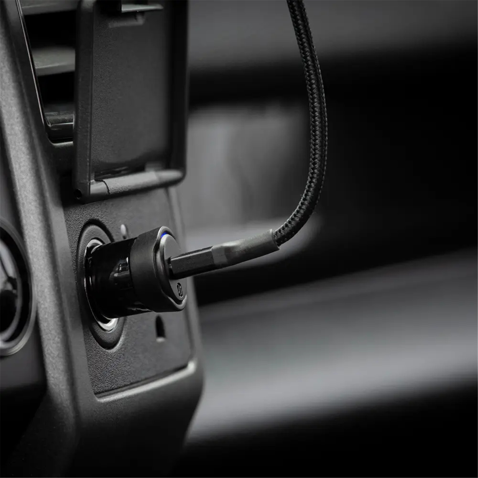 -Blue LED indicator lets you know the charger is receiving power to charge device from your vehicles 12V power outlet.