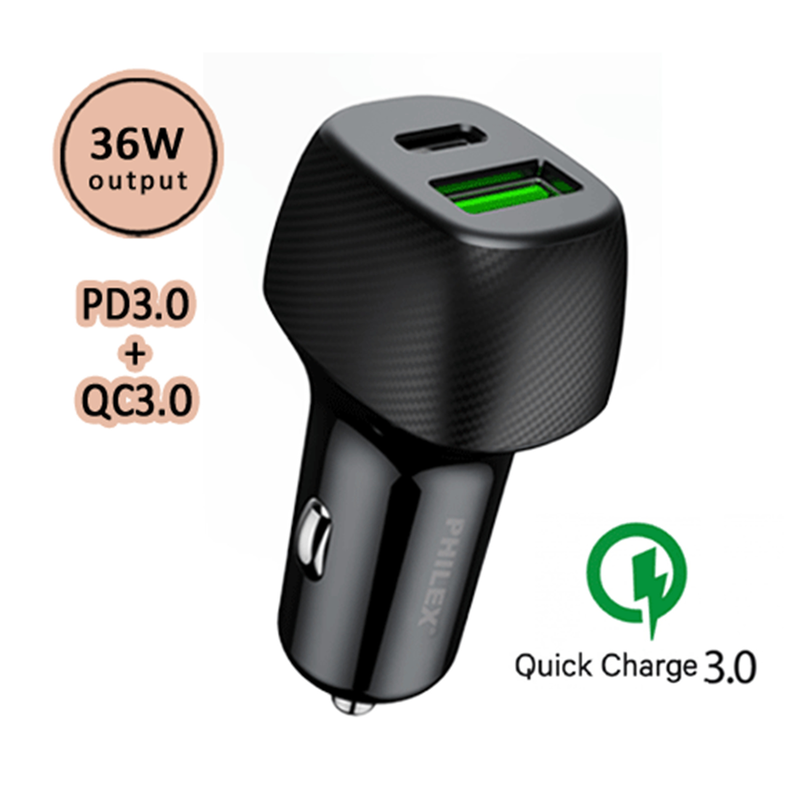 PHILEX PHC-7606P 36W QC3.0 Dual Outlets Quick Car Charger