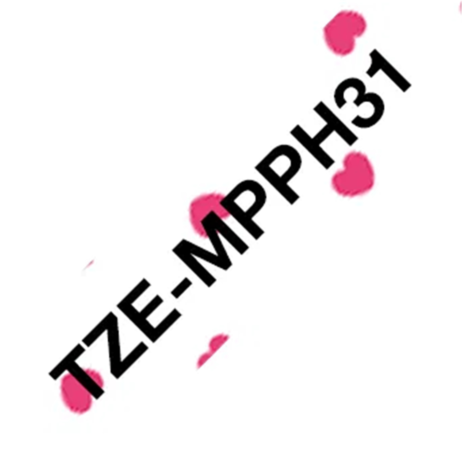 Brother TZeMPPH31 PTouch Black on Pink Hearts Tape 12mm x - 12 mm - Direct Thermal