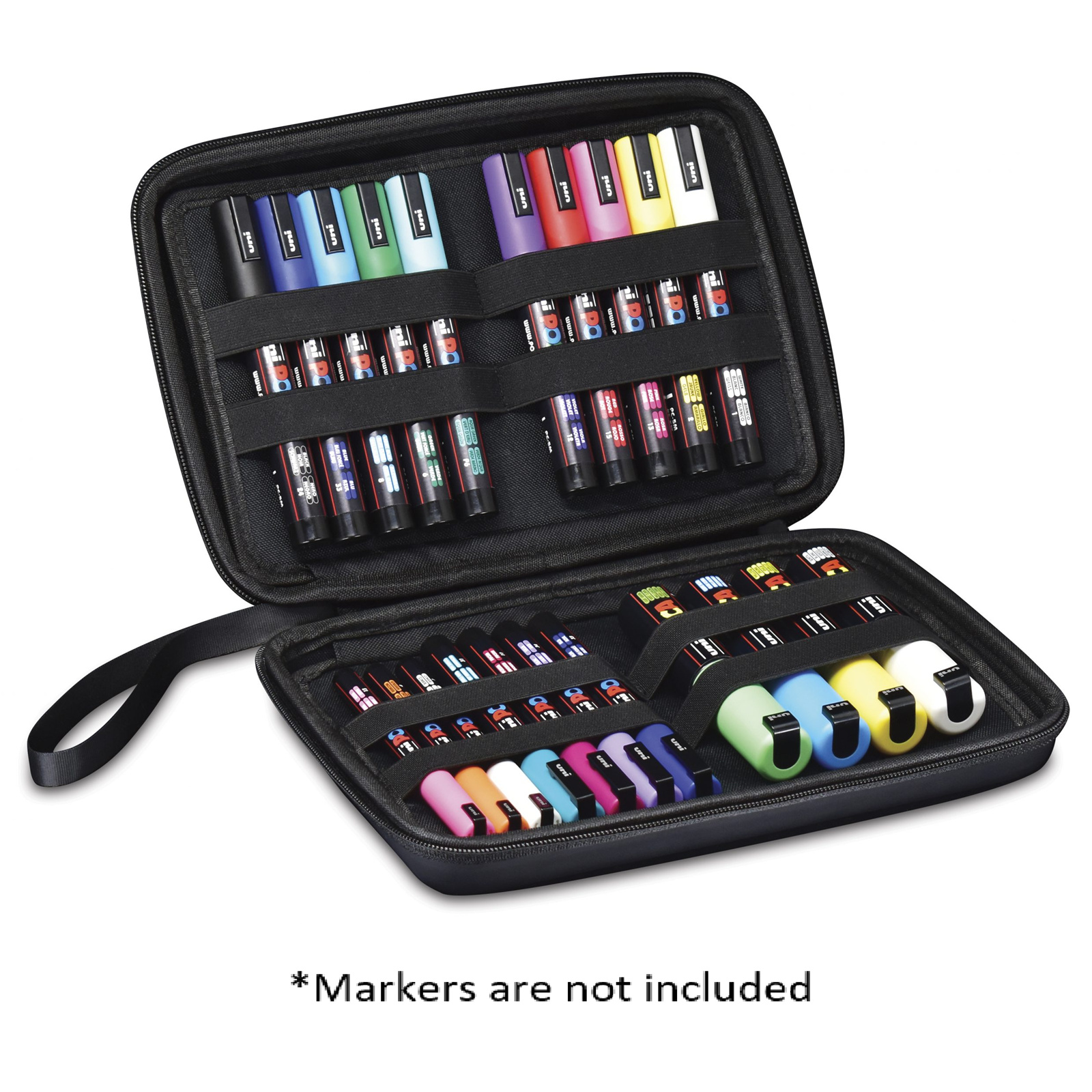 The Posca Marker Small Storage Case allows you to store and organise your favourite POSCA markers. The case offers two separate compartments that hold up to 25 markers and features a wrap around zip for added security. Markers are kept secure and neat with thick elastic, so you can store your markers in an organised manner.