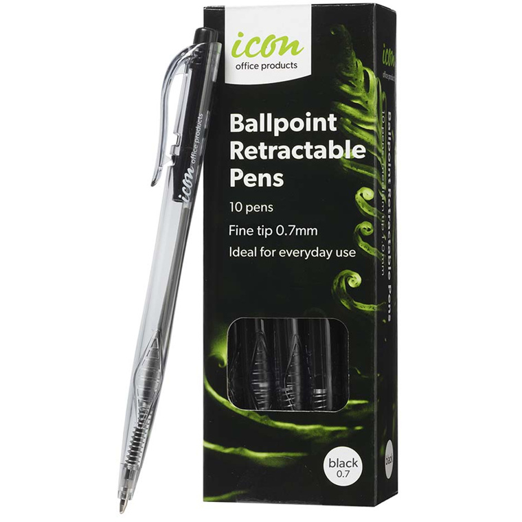 Icon Ballpoint Retractable Pens Fine Black, Pack of 10
